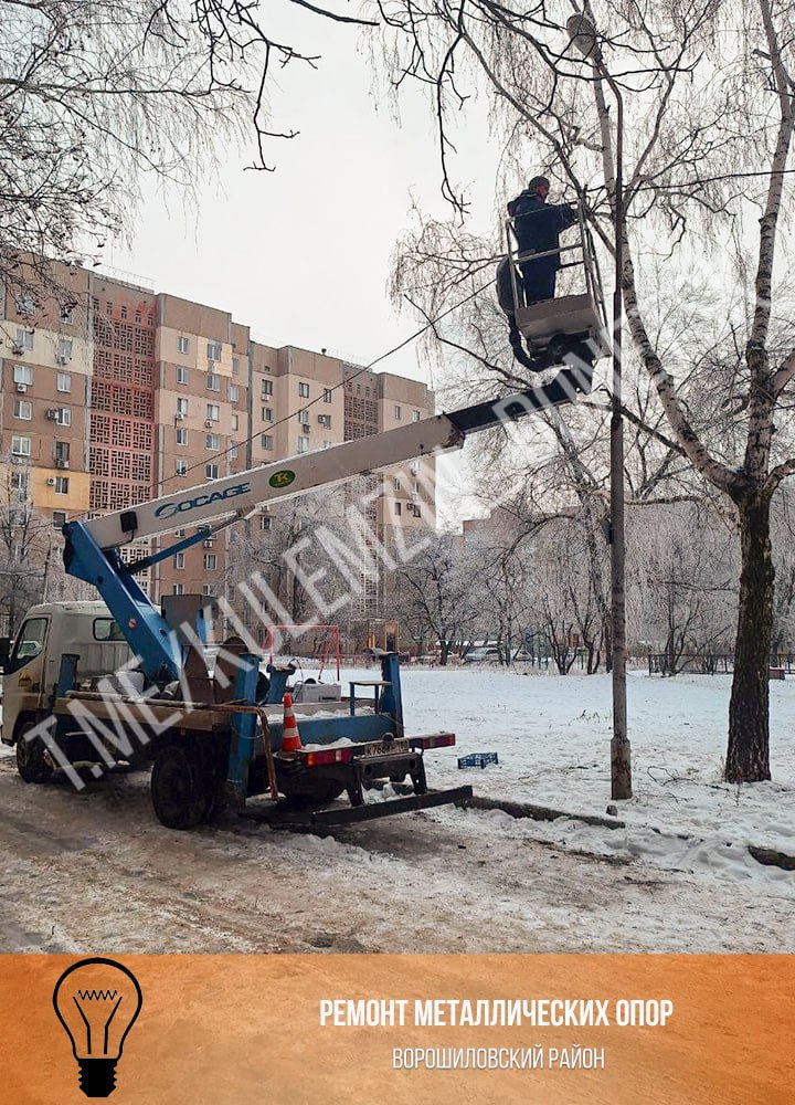 Специалисты предприятия «Донецкгорсвет» продолжают выполнять обслуживание электросетей и оборудования во всех районах города.