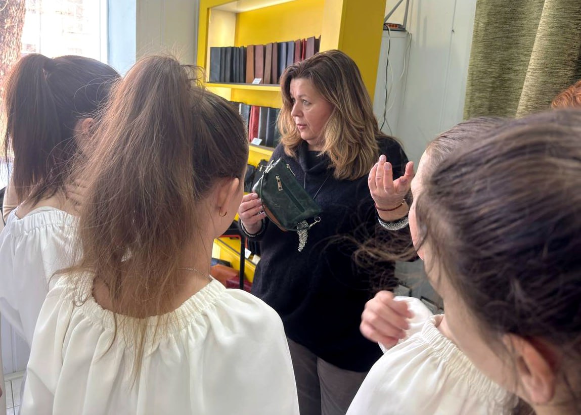 Предприниматель поделилась с ребятами своей историей успеха, рассказала о тонкостях ремесла и этапах развития собственного производства. Лекция вызвала живой интерес, который продолжился на практике: после презентации школьники отправились на экскурсию в сам салон, расположенный в центре города. Там они смогли в деталях рассмотреть изделия из кожи, узнать о технологиях их создания и даже прикоснуться к процессу работы мастера.
