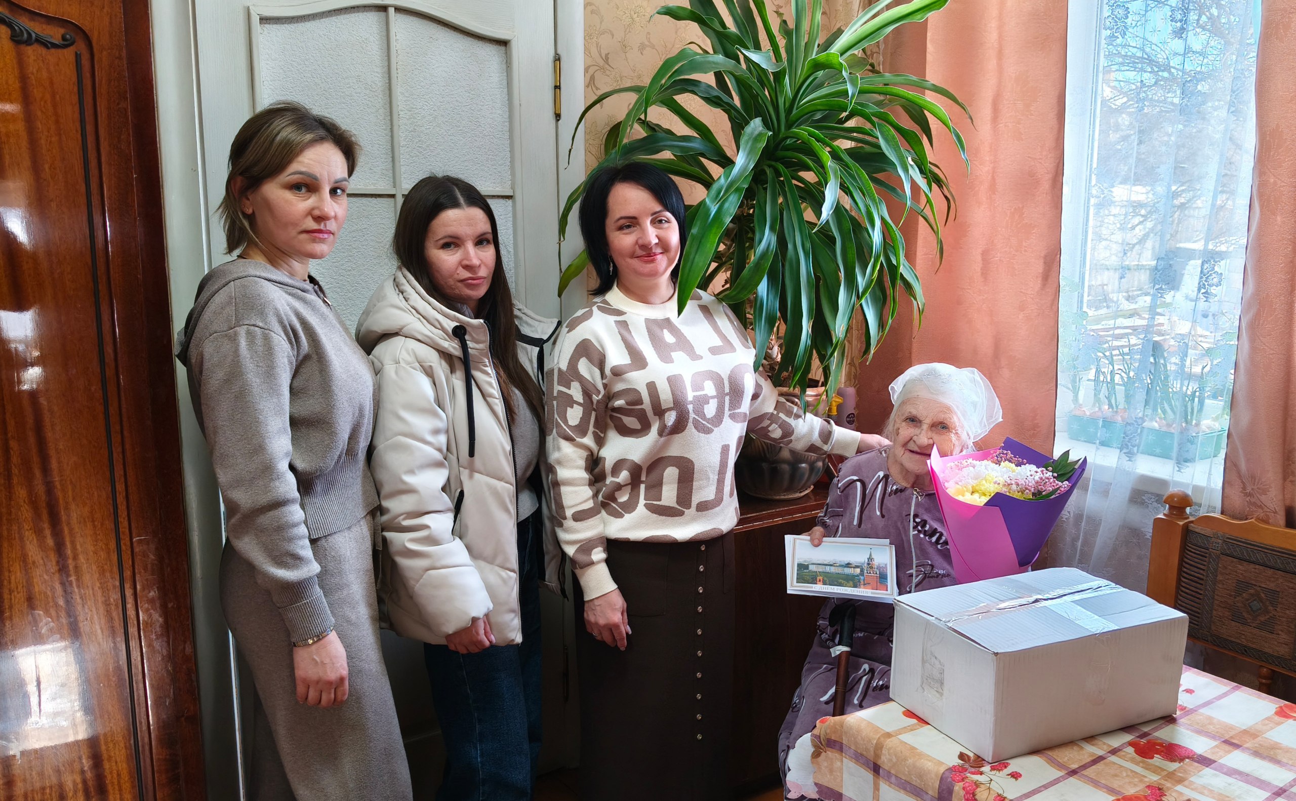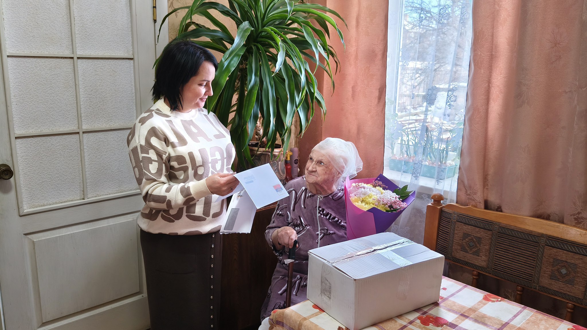 Заместитель главы администрации Волновахского муниципального округа, координатор Женского движения "Единая Россия" Елена Снисаренко посетила именинницу, передала поздравительный адрес от Президента России Владимира Путина, а также вручила символические подарки – цветы и продуктовый набор.