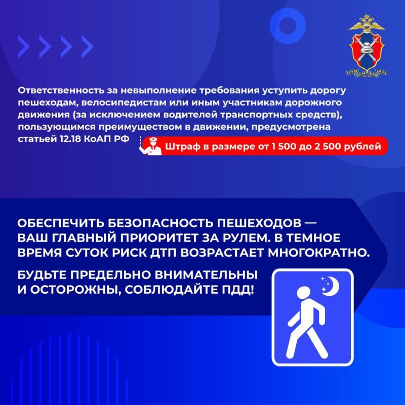 Сегодня в карточках от Госавтоинспекции России напомним, как снизить риск наезда на пешехода в темное время суток, - что нужно знать и на что обратить внимание.