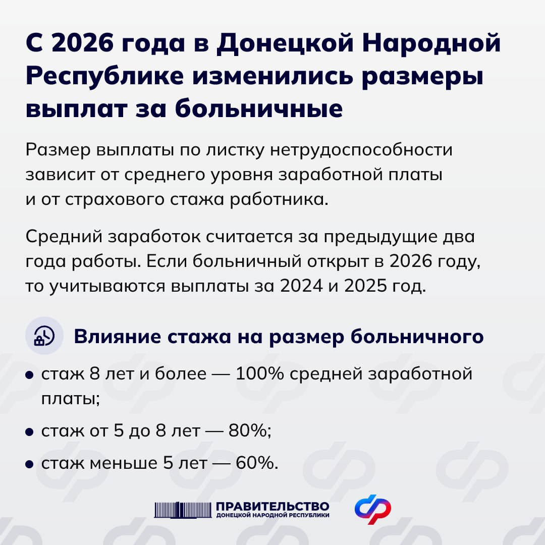 С 2026 года в ДНР изменились размеры выплат за больничные