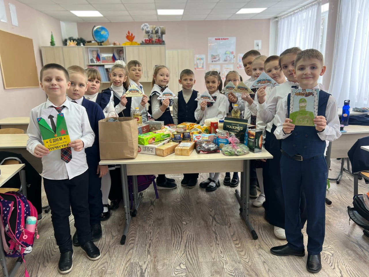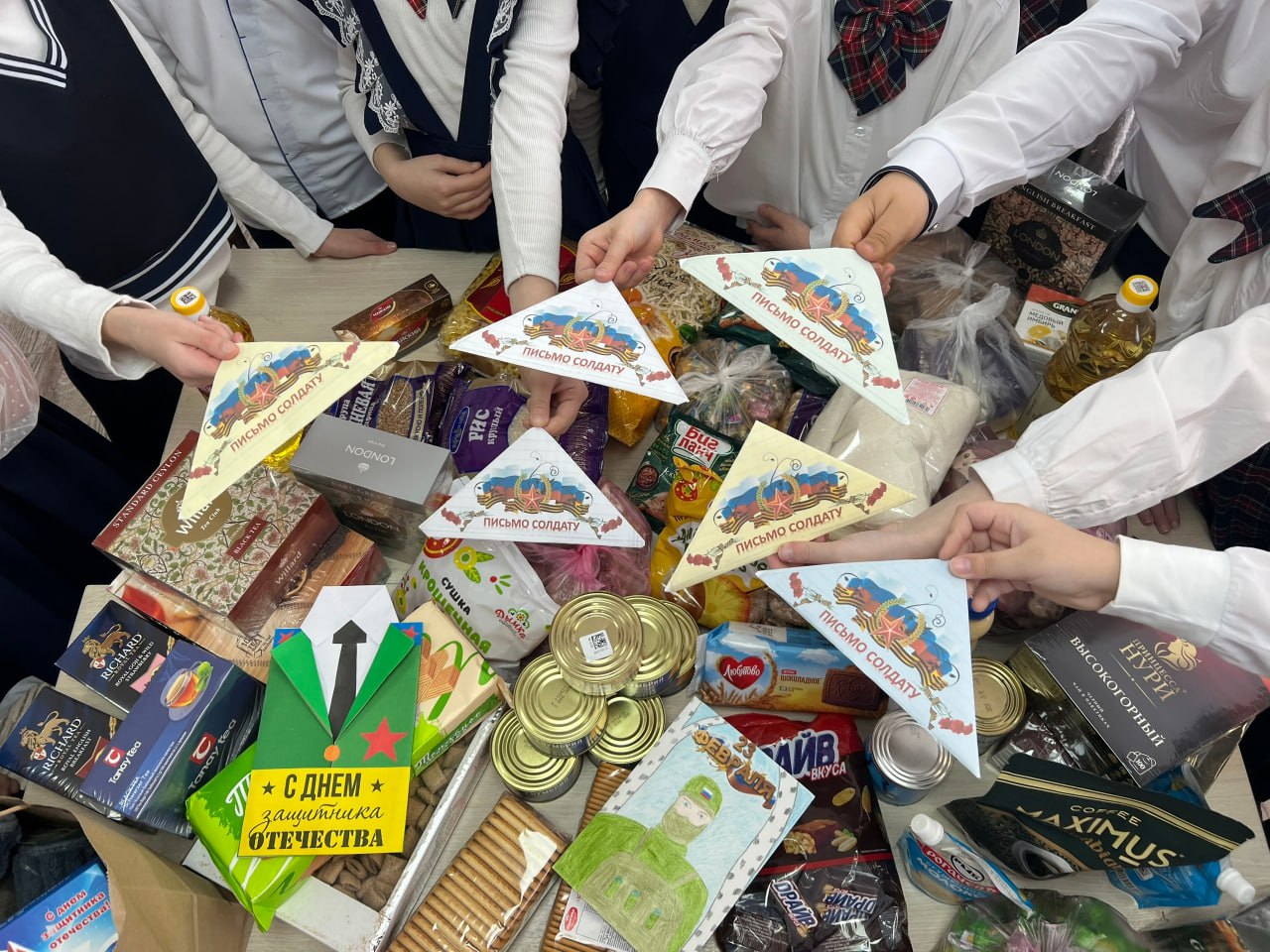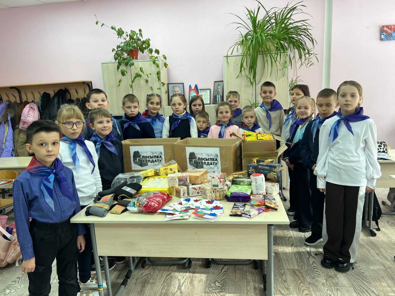 Школьники собрали для военнослужащих угощения, а также теплые вещи, которые так необходимы в условиях службы.