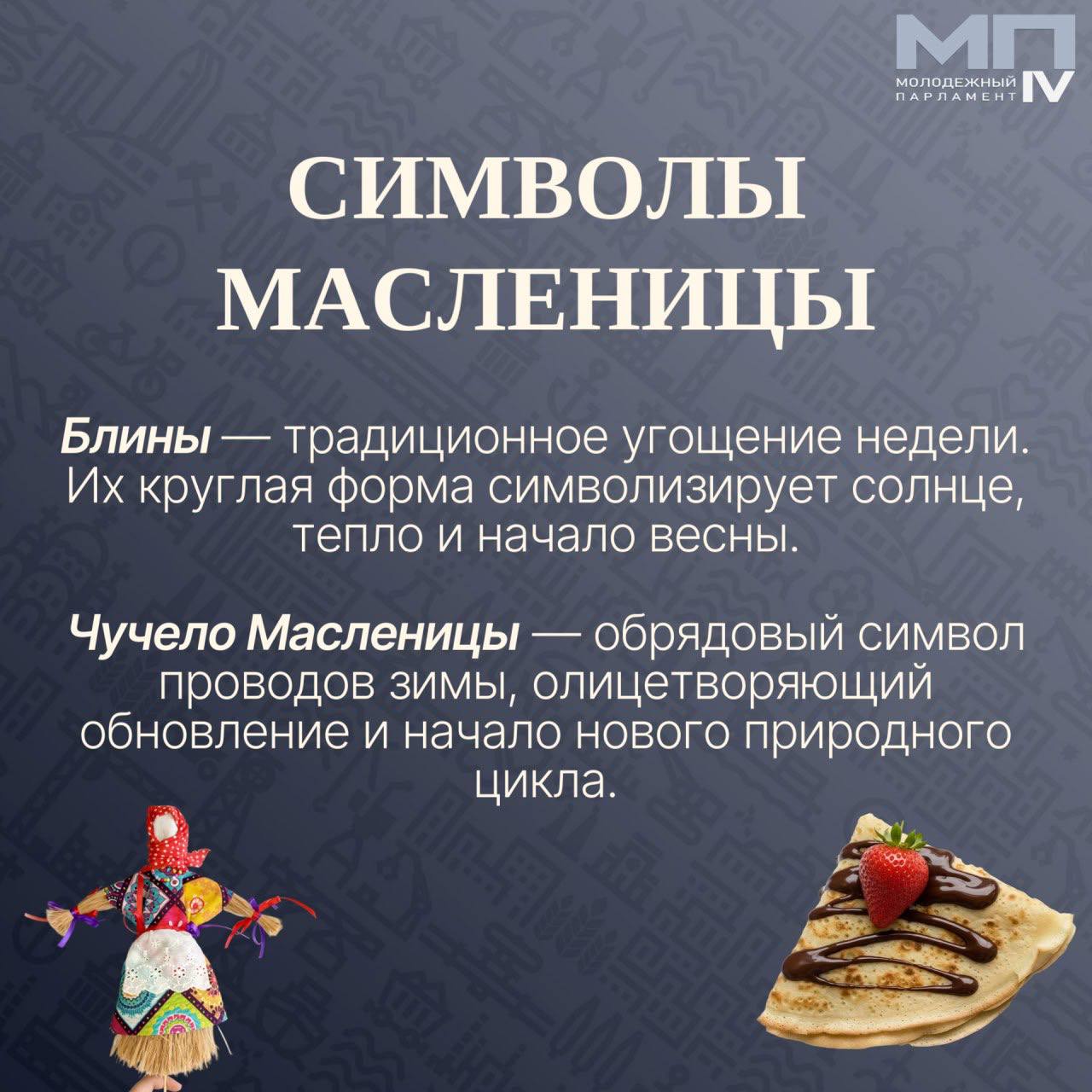 Комитет по реализации молодежных инициатив и сохранению культурных и духовных ценностей подготовил карточки, на которых рассказал о Масленичных традициях.
