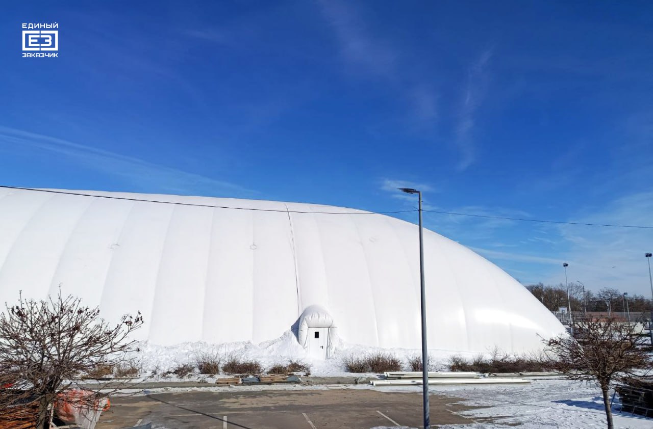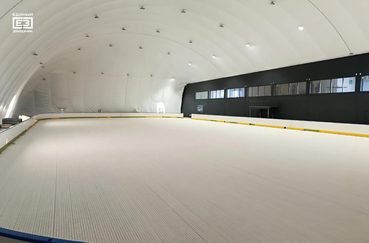 Параллельно с возведением воздушного купола над ледовым полем строители завершили монтаж всего необходимого холодильного оборудования и трубопроводов будущего катка.