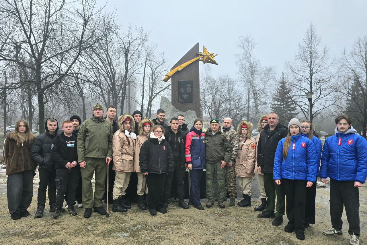 Вместе с молодежью Республики председатель #Комитет_по_поддержке_участников_СВО возложил цветы к памятнику «Погибшим воинам-интернационалистам» в Харцызске.