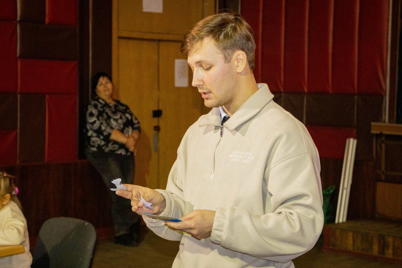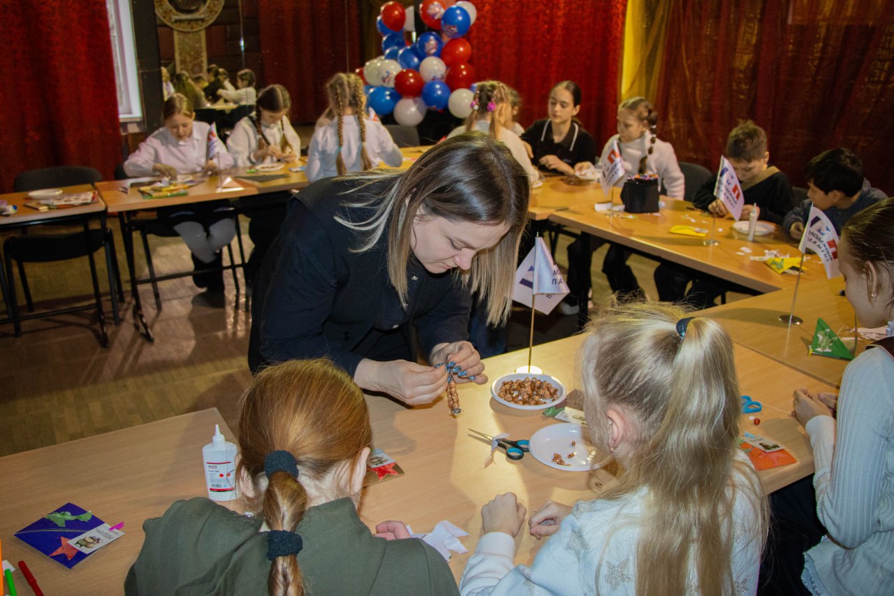 Вместе с ребятами научились делать оригинальные открытки своими руками, а после изготовили из бусин браслеты. Все работы собрали в «Коробку тепла», откуда они отправятся военнослужащим на фронт. Мероприятие же завершилось встречей с Чебурашкой, подарившим ребятам шарики и сувениры.