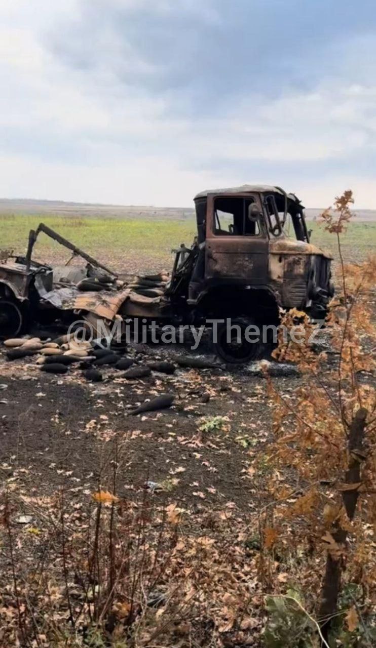 Архив. Октябрь 2025.. Уничтоженный грузовик ГАЗ 66 ВСУ в Донецкой области