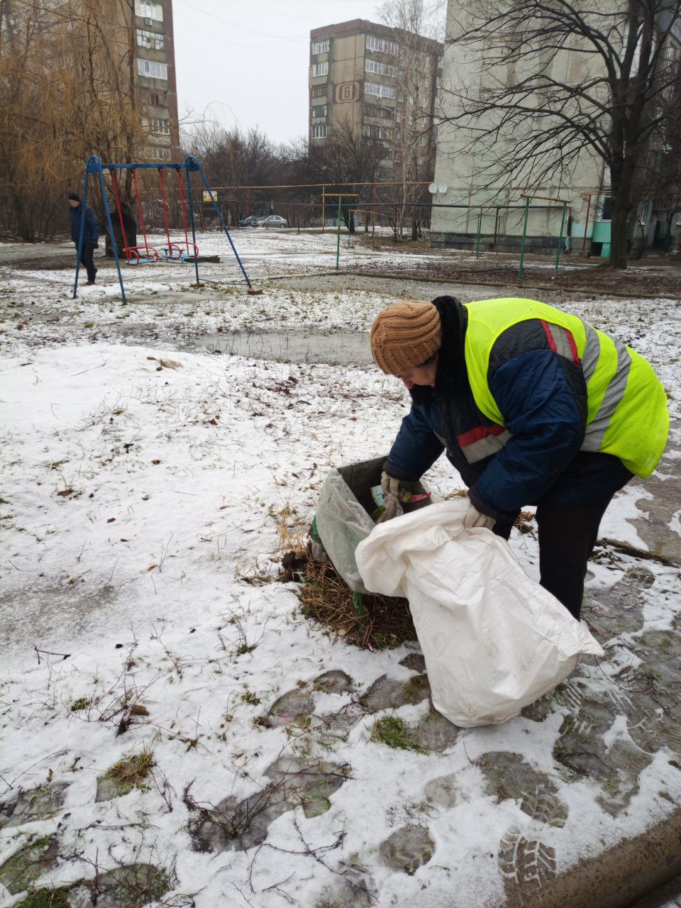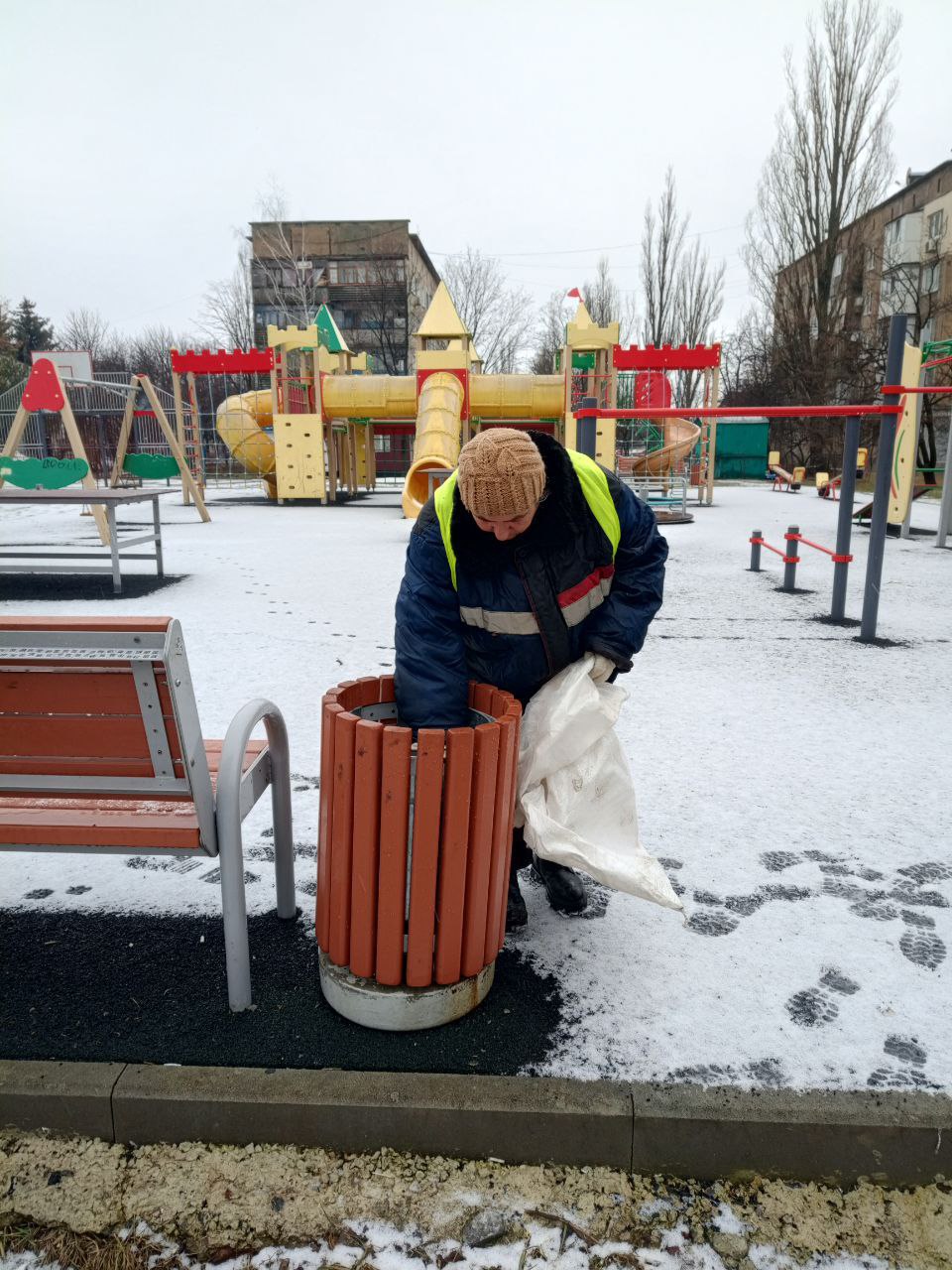 Уборка детских площадок и урн на детских площадках.