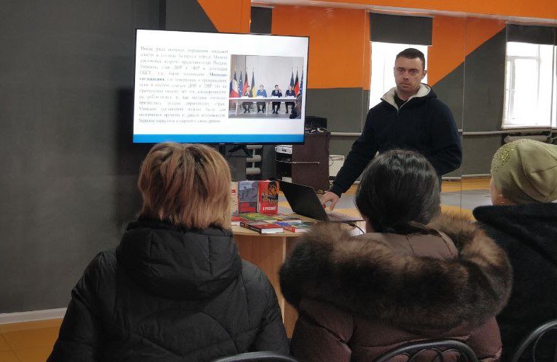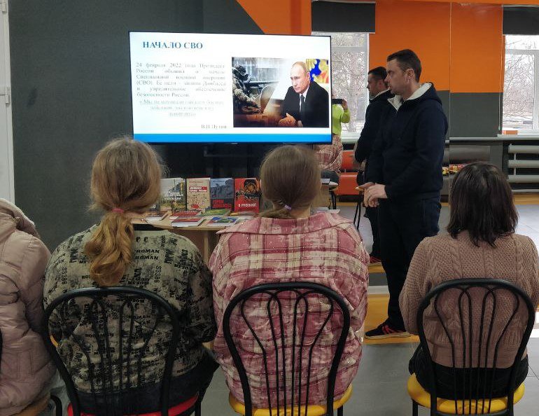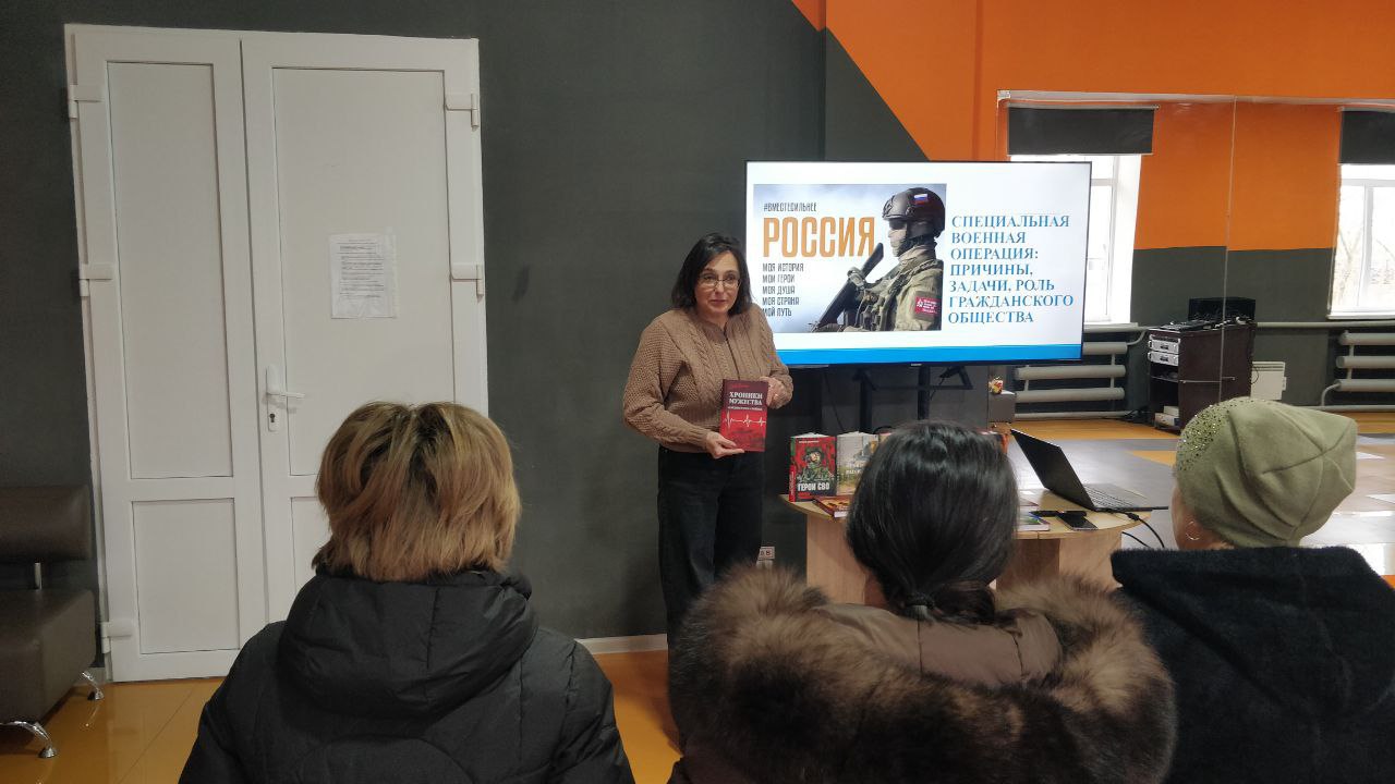 24.02.2026. МБУ "Вольненский СДК" совместно с Вольненской библиотекой провели Урок мужества, приуроченный к четвертой годовщине СВО «Героями не рождаются — героями становятся»