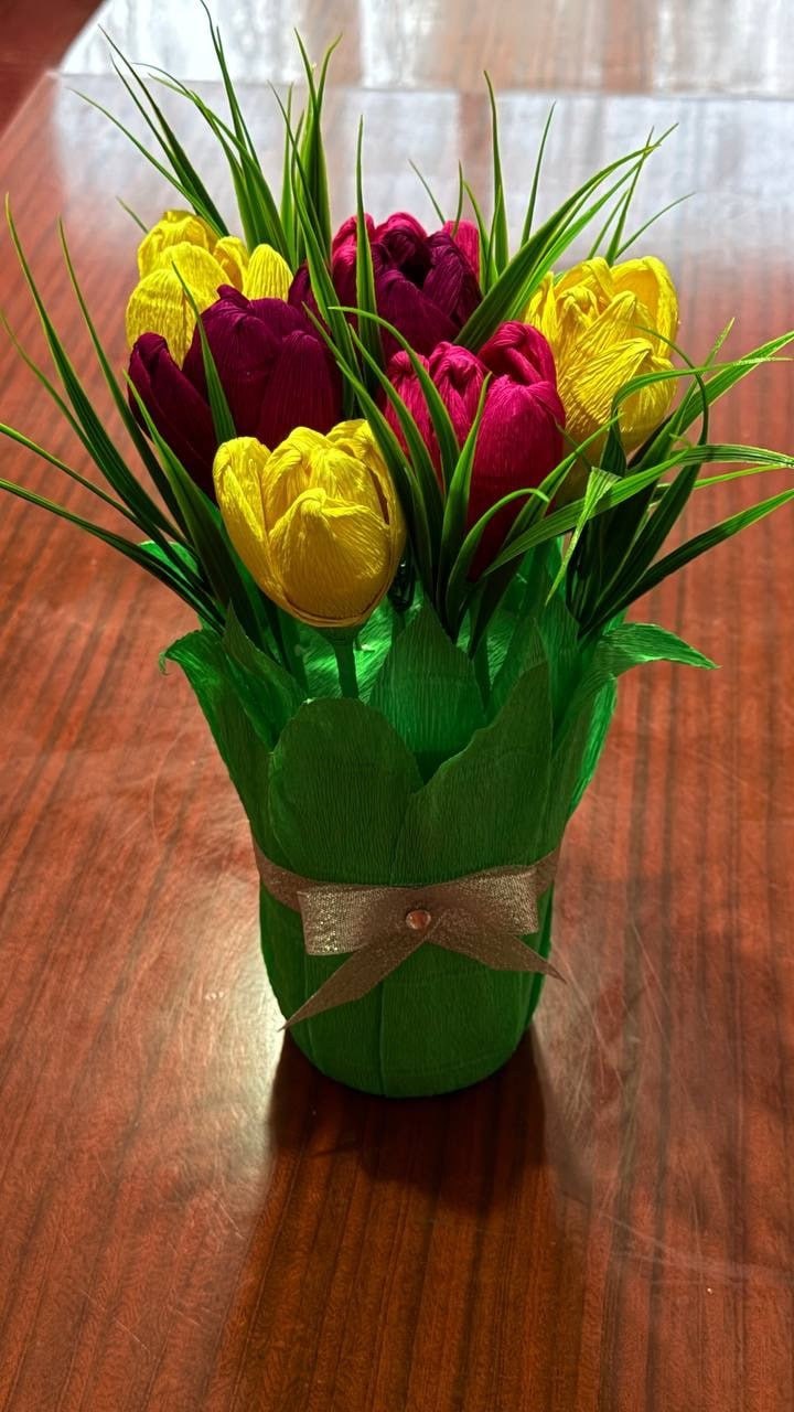 Присутствующие с большим интересом осваивали новую технику, вкладывая фантазию и тепло в свои поделки. В уютной и творческой атмосфере участники не только получили новые навыки, но и смогли приятно провести время, создавая яркий кусочек весны своими руками. Созданные тюльпаны стали замечательным сувениром, который каждый унес с собой.