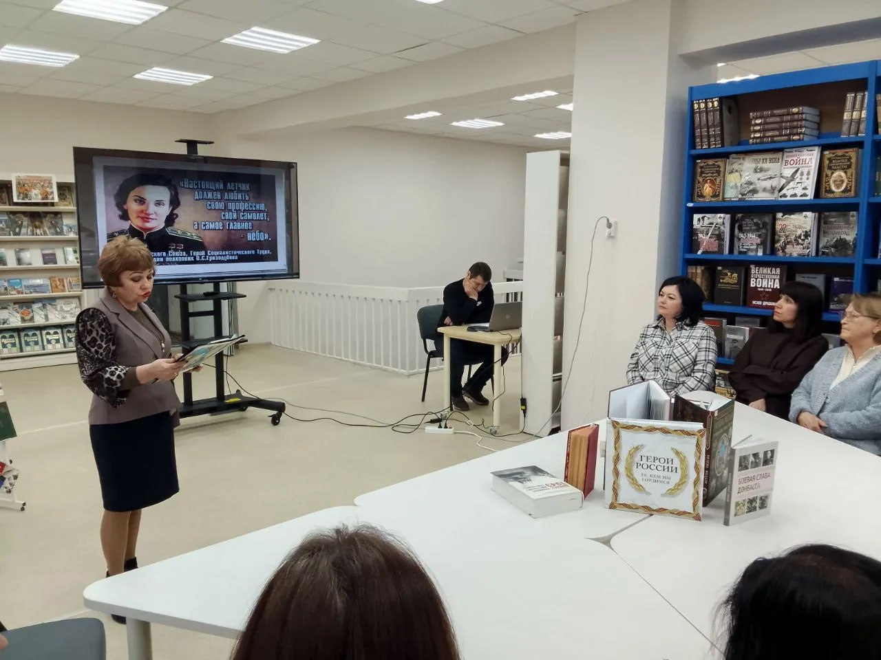В память о тех героических событиях в читальном зале была развернута книжно-иллюстративная выставка «Дочери Отечества – подвиг во имя жизни». Слушателям предложили вспомнить имена других героинь-землячек. Среди них – Герой Советского Союза, гвардии капитан Надежда Попова, Марина Раскова, Полина Осипенко, Вера Белик, Нина Гнилицкая, Татьяна Числова (уроженка Харцызска), чьи подвиги стали неотъемлемой частью Великой Победы и основой нашей общей памяти.