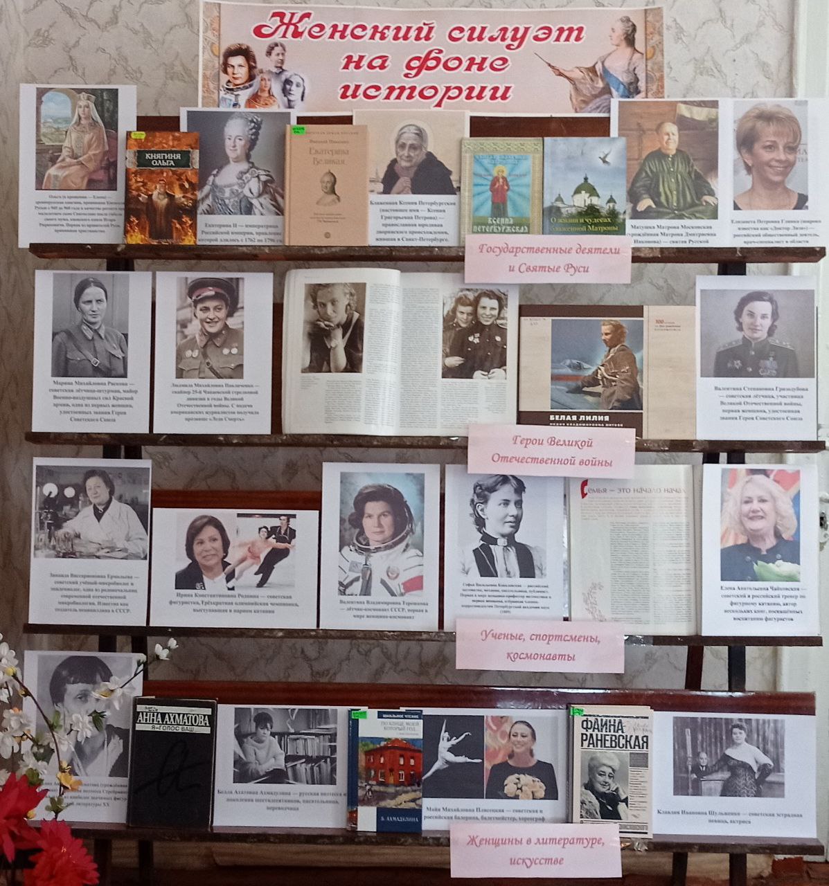 На выставке представлены книги о великих женщинах разных эпох, оставивших яркий след в истории России.