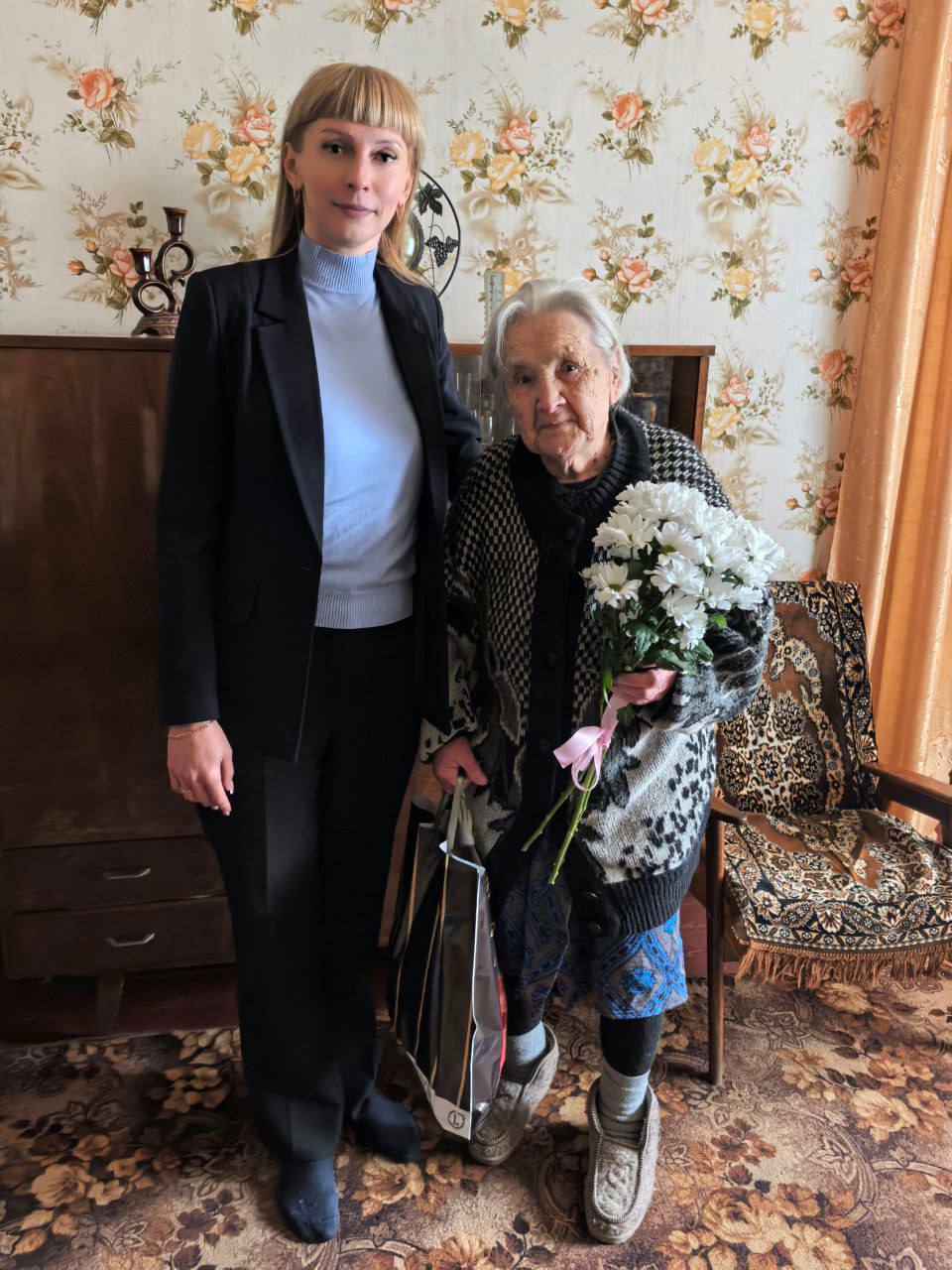 Первый заместитель главы Юлия Рачек и управляющий делами администрации Анна Полянская посетили ветерана Великой Отечественной войны Бутко Зою Александровну и Полякову Людмилу Андреевну – председателя городского совета...