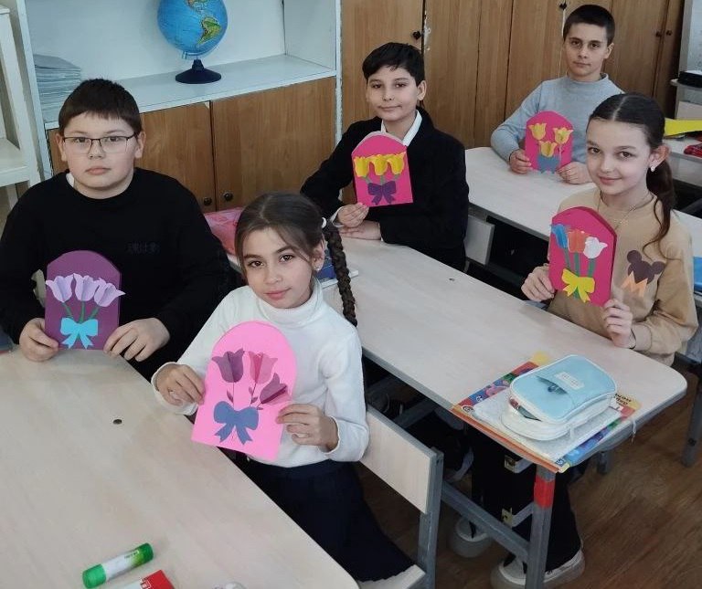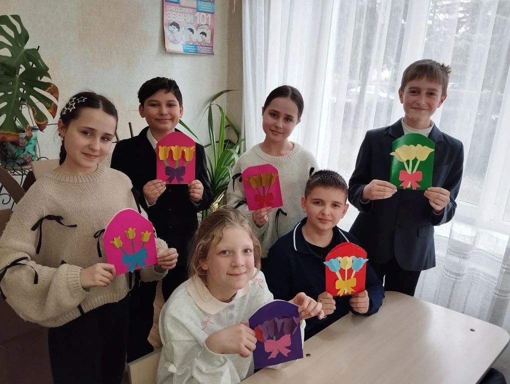 В преддверии Международного женского дня, в образовательных учреждениях Кировского внутригородского района прошел мастер – класс по изготовлению праздничных открыток и цветочных изделий «Цветы мамам героев».