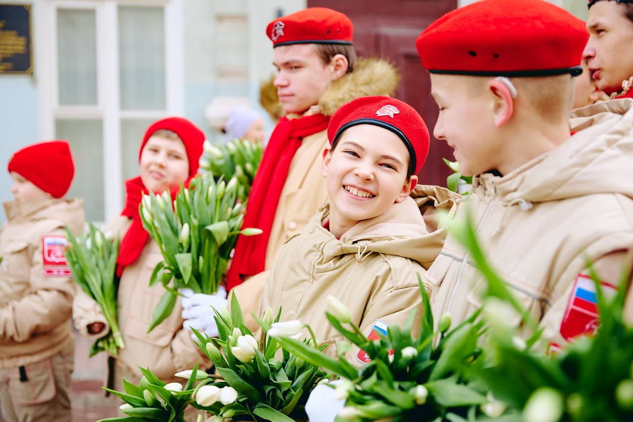 По всей стране сегодня юнармейцы выходят на главные улицы своих городов, чтобы поздравить с 8 марта всех женщин, которые им встретятся, поблагодарить за внимание, заботу и поддержку, пожелать крепкого здоровья, счастья и исполнения самых заветных желаний,