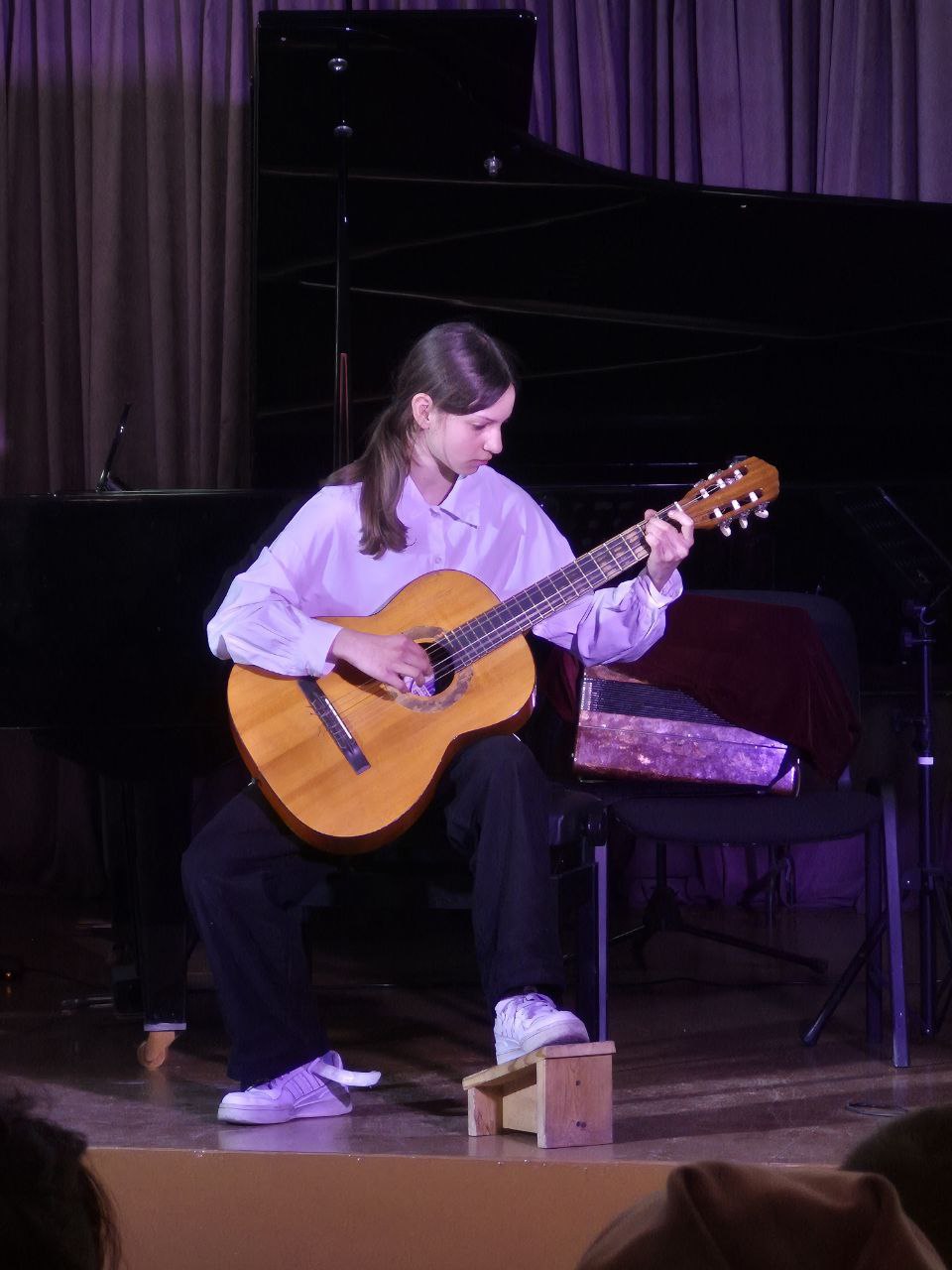 Преподаватели и юные музыканты исполнили красивые популярные произведения композиторов разных эпох, подчеркивая торжественную атмосферу весеннего настроения.