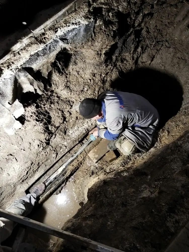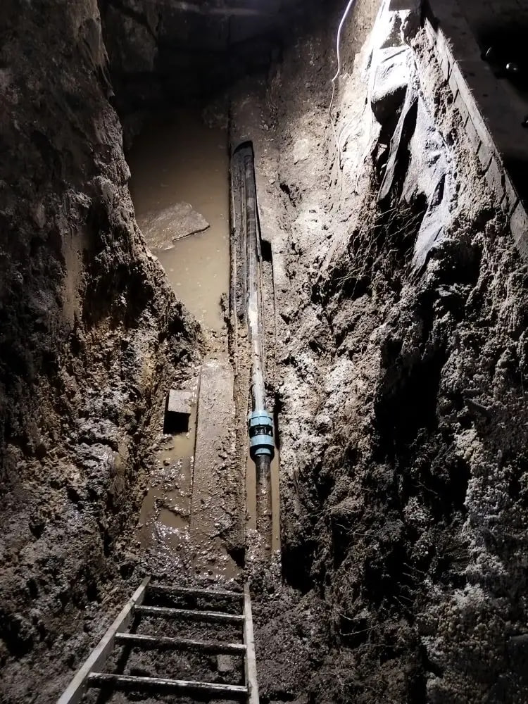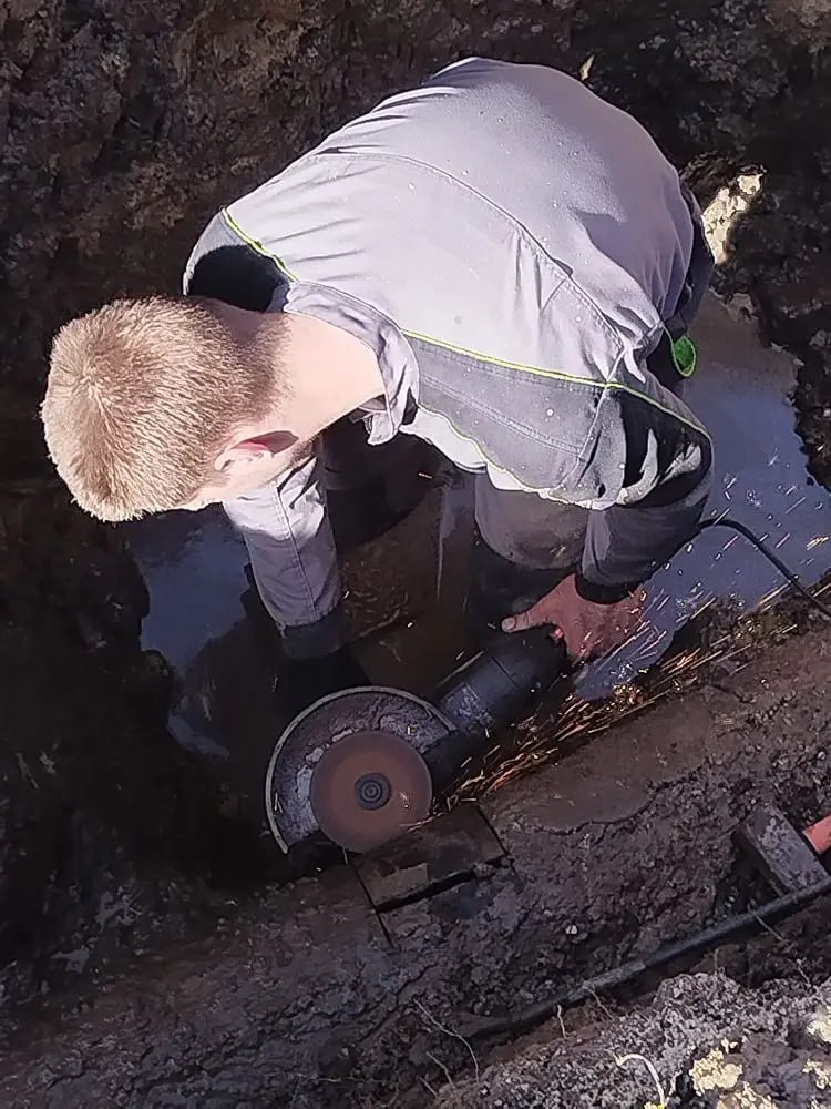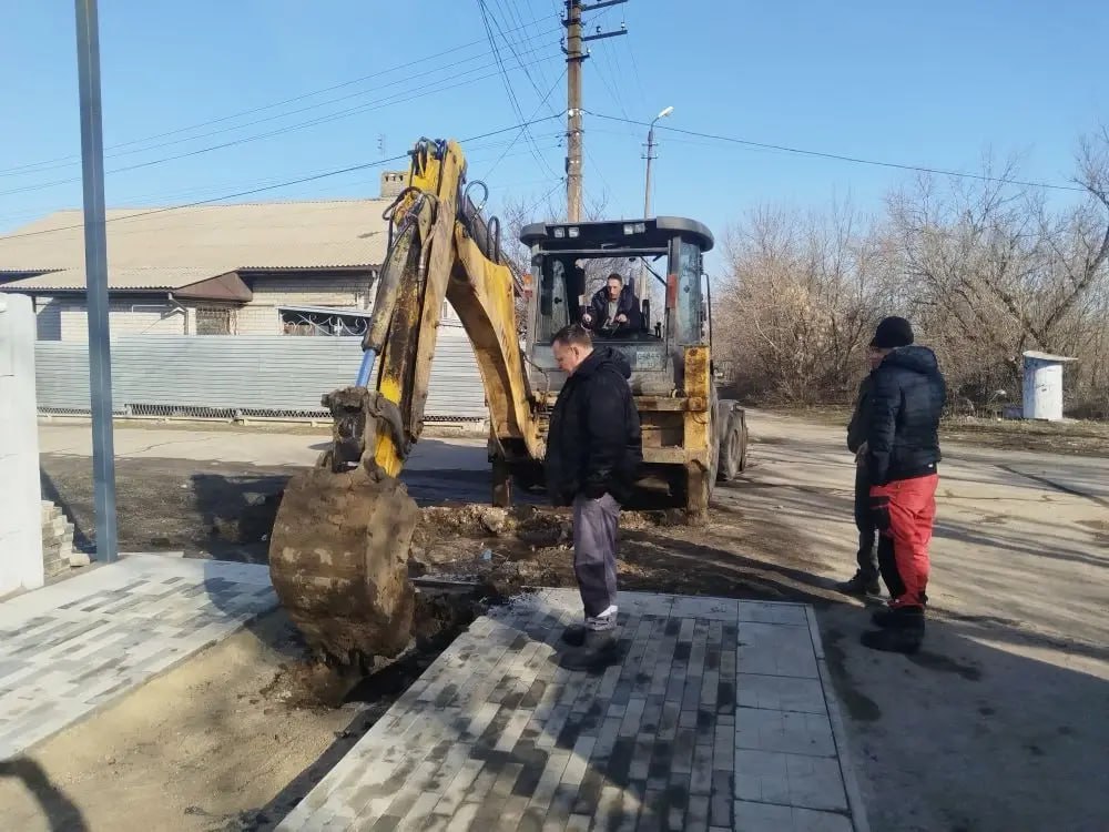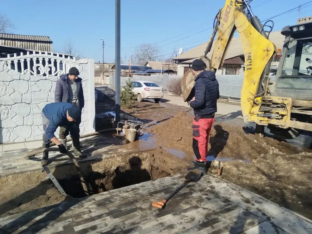 После земляных работ и демонтажа поврежденного участка, рабочие установили новую пластиковую трубу длиной 20 м и подключили в систему водоснабжения.