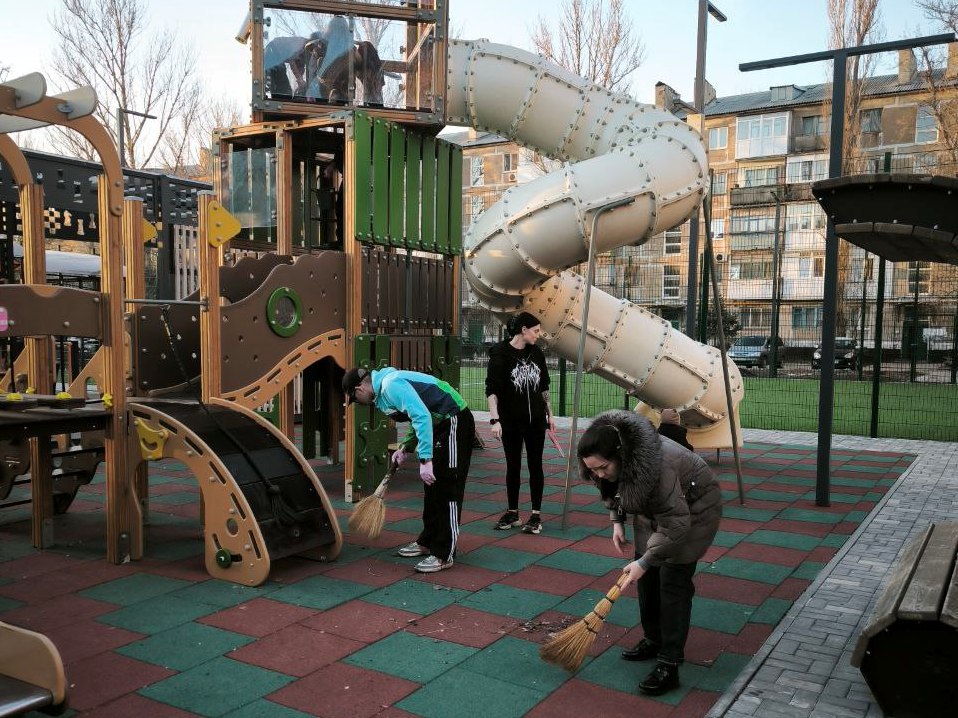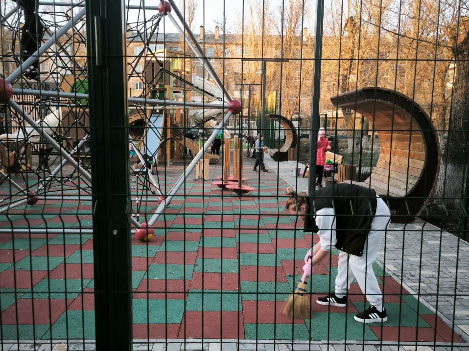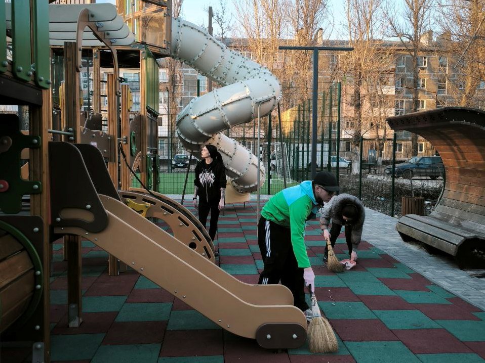 В Шахтерске жители навели порядок на территории детской площадке