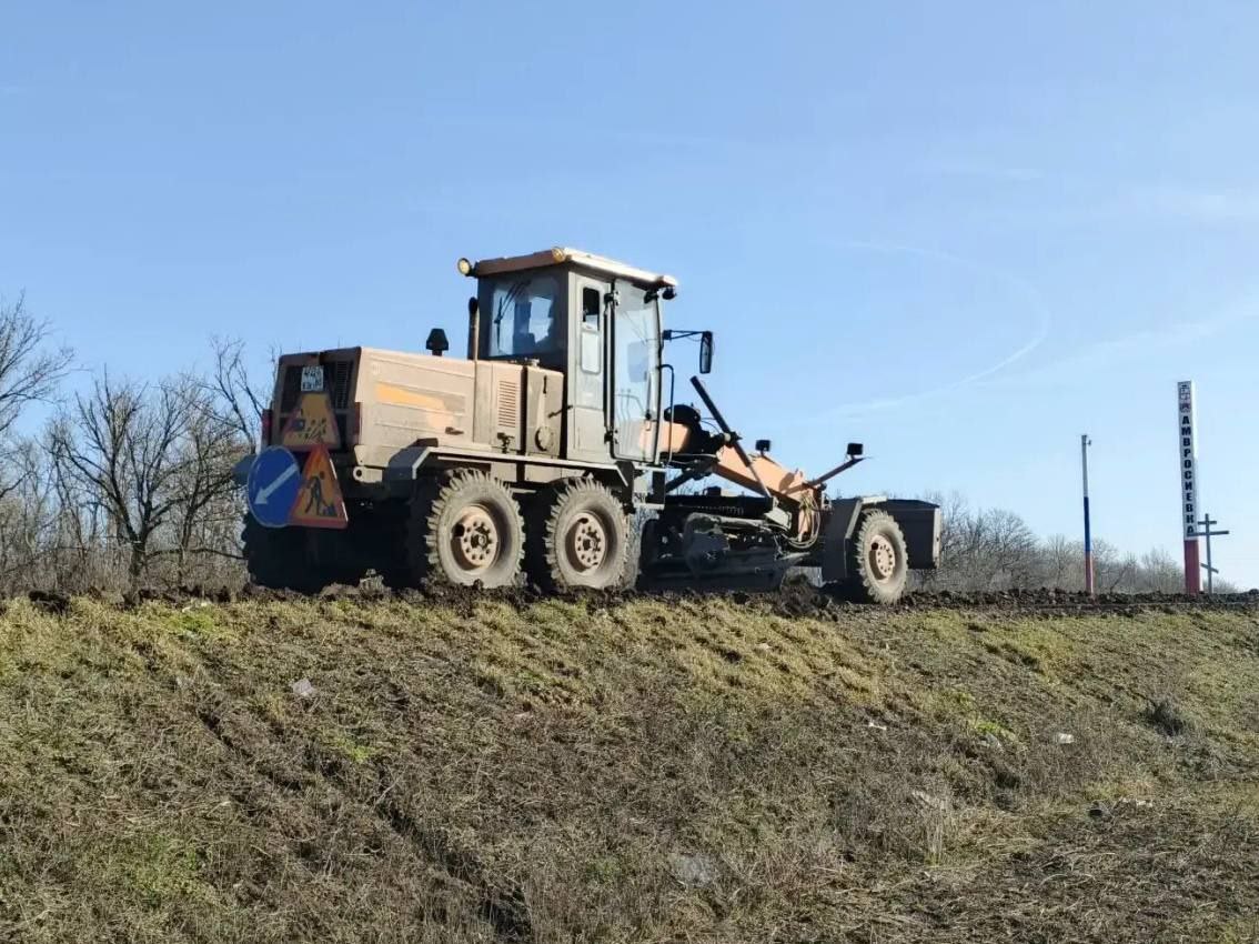 выполнили планировку обочин автогрейдером на автомобильной дороге Донецк - Харцызск - Амвросиевка - до границы Ростовской области