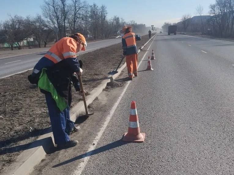 произвели очистку дорожных знаков и светоотражающих элементов металлического барьерного ограждения на автодороге Донецк - Харцызск - Амвросиевка - до границы Ростовской области