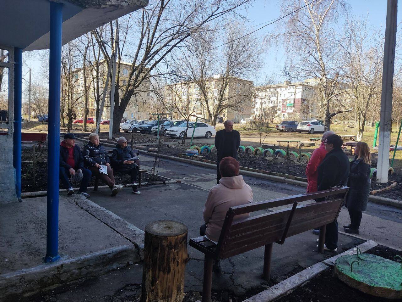 Встречу провёл заместитель начальника Моспинского территориального управления администрации городского округа Донецк Овчаренко Андрей Викторович совместно с депутатом Донецкого городского совета Донецкой Народной Республики Резниченко Георгием Леонидовичем.
