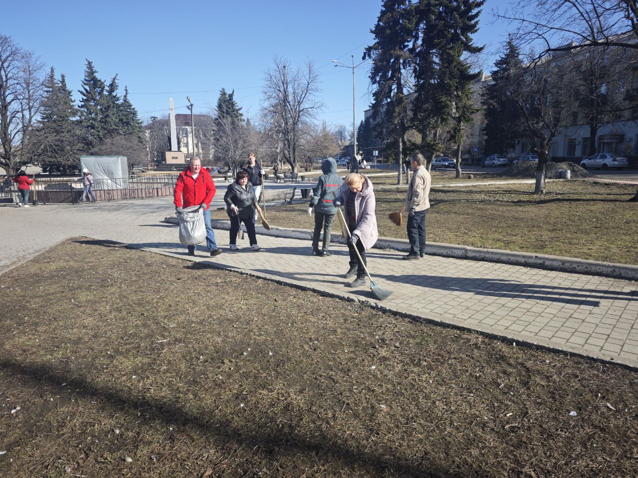 Сегодня, 13 марта 2026 года, сотрудники администрации, работники организаций и учреждений городского округа Дебальцево в рамках акции «Всероссийский крымский субботник» продемонстрировали свою активную гражданскую позицию, приняв участие в экологическом субботнике. Вооружившись вениками и совками, очистили центральную площадь от опавших листьев, штучного мусора и сухостоя.