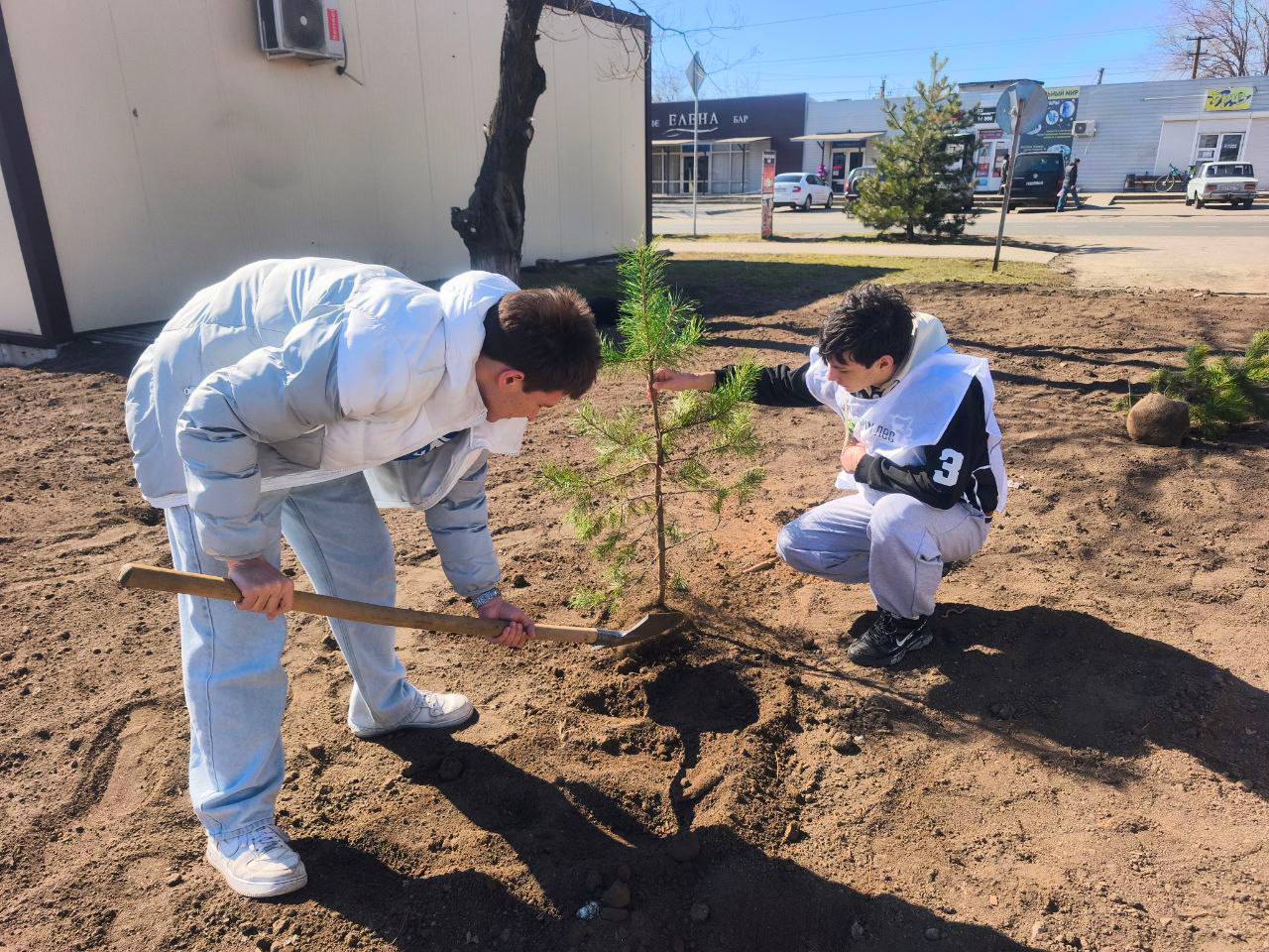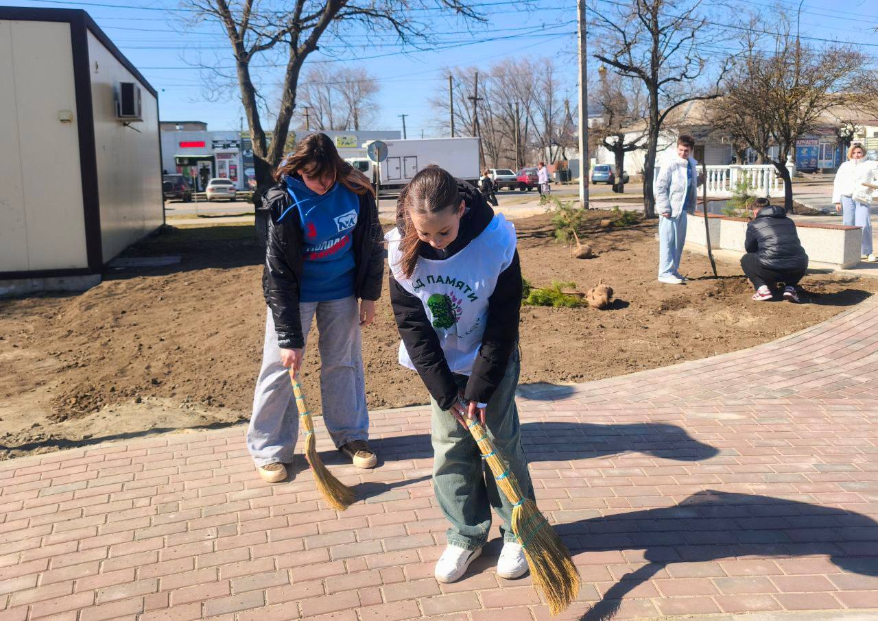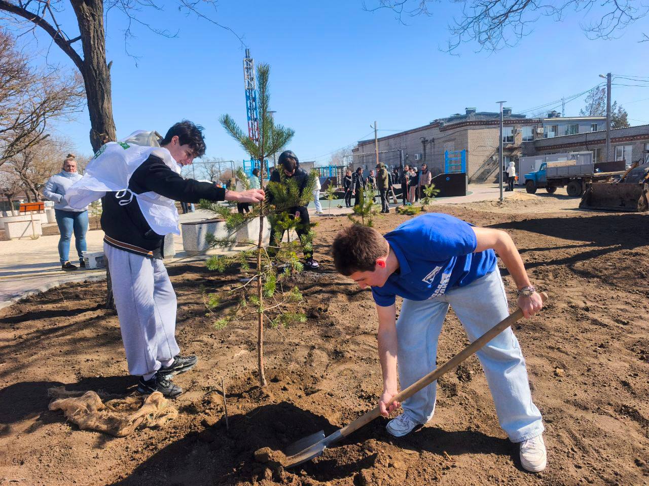 Ребята высадили на территории молодые ели и сосны, подмели дорожки, убрали мусор и подготовили парк к тёплому сезону