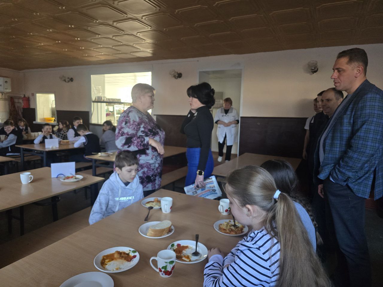 Глава городского округа Докучаевска Александр Качанов и его заместитель Юлия Хижняк посетили школу №5, чтобы лично убедиться, как организовано питание учеников. Итоги проверки в целом позитивные: школа обеспечивает всех детей горячими обедами и работает буфет. Все санитарные нормы и требования к организации питания в учреждении строго соблюдаются.