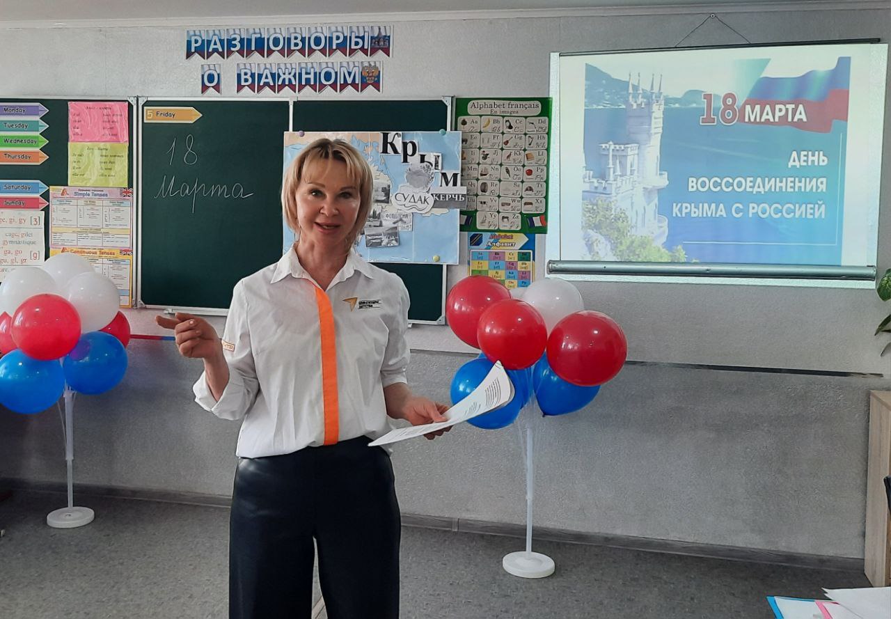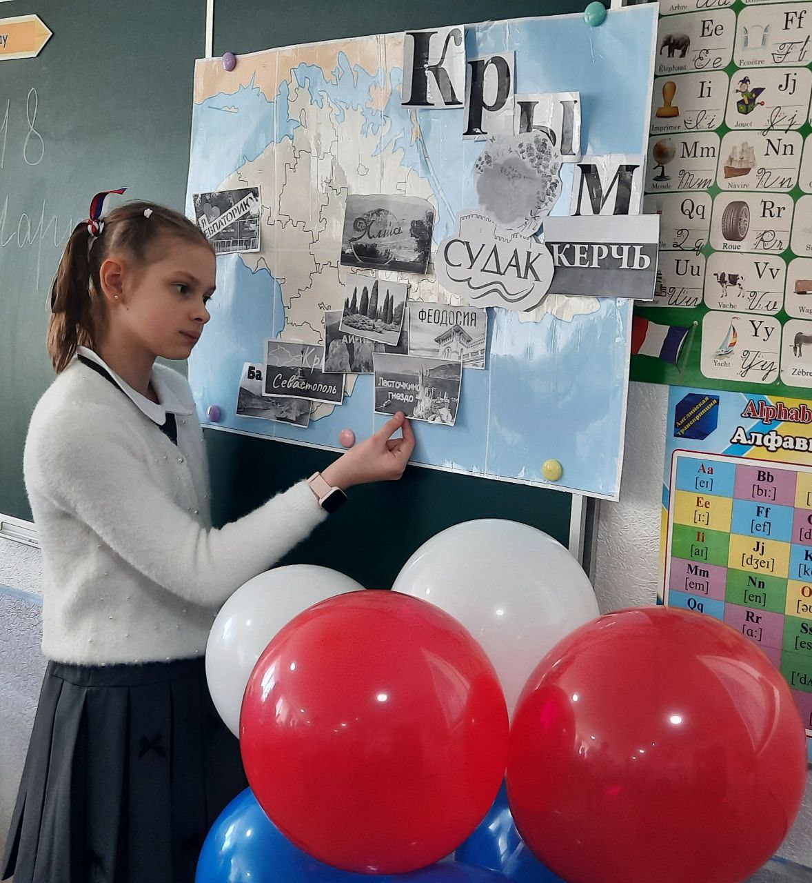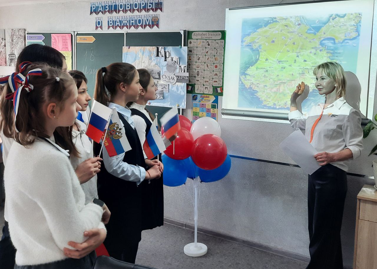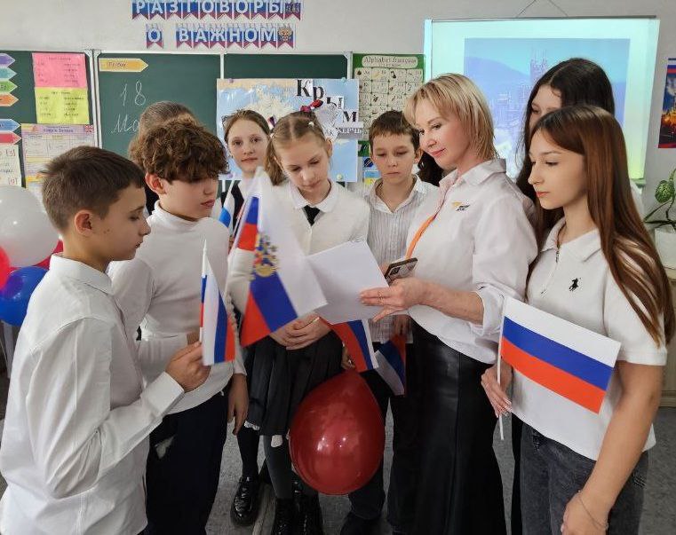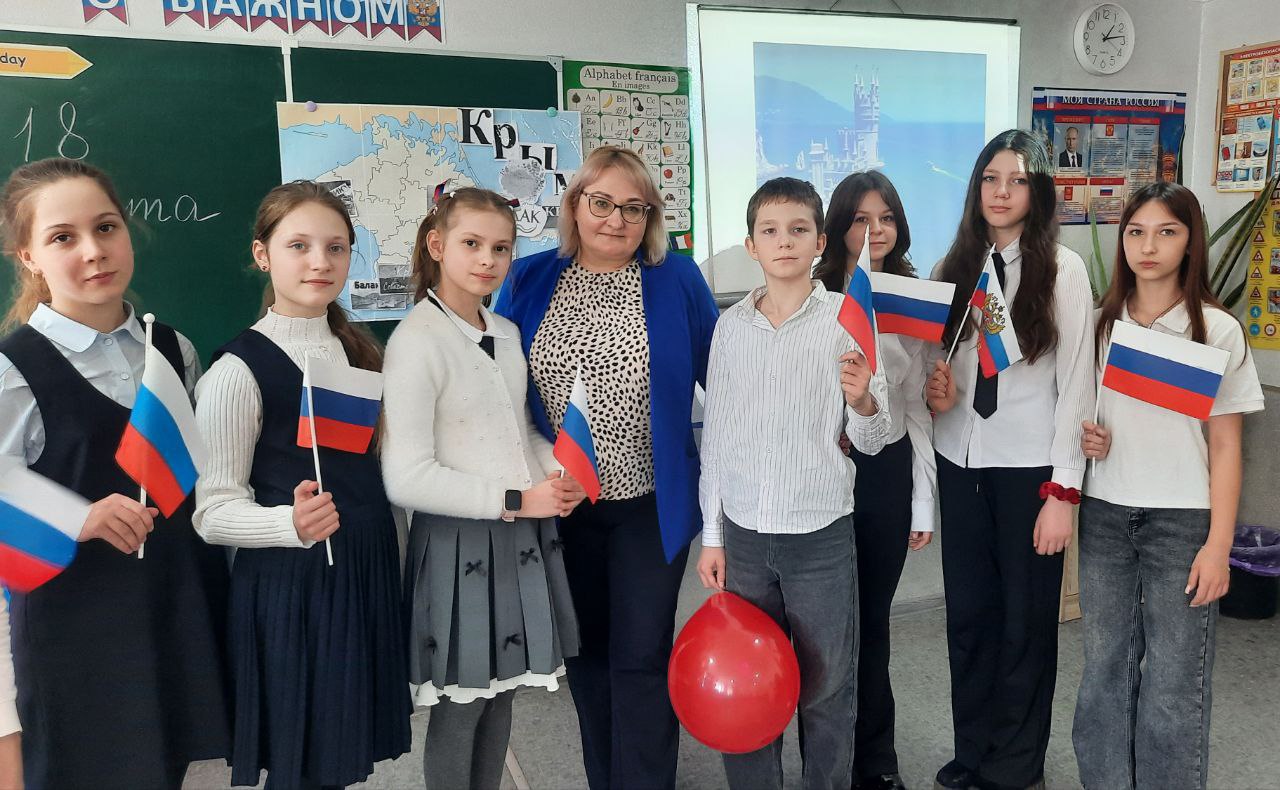 В преддверии значимой даты 18 марта – Дня воссоединения Крыма с Россией, в ГБОУ "Гимназия г.о. Торез" советник директора по воспитанию Парфенова А.В. совместно с классным руководителем Федоровой И.А. и учащимися 6-Б класса приняли участие во Всероссийской акции "Одна страна – одна история".