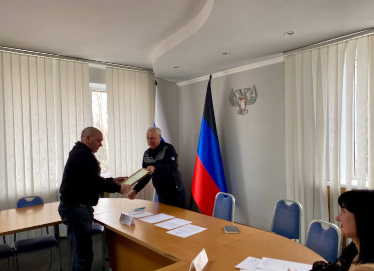 Совещание началось с вручения благодарностей за активное участие в организации работы пунктов временного размещения граждан, эвакуированных с освобожденных территорий Донецкой Народной Республики от председателя правительства ДНР А.Г. Черткова: