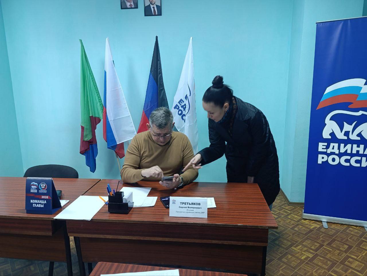 18 марта 2026 года состоялся приём граждан депутатом Горловского городского совета Донецкой Народной Республики первого созыва Сергеем Третьяковым в местной общественной приёмной Председателя Партии «ЕДИНАЯ РОССИЯ» Дмитрия Медведева в Центрально-городском районе.