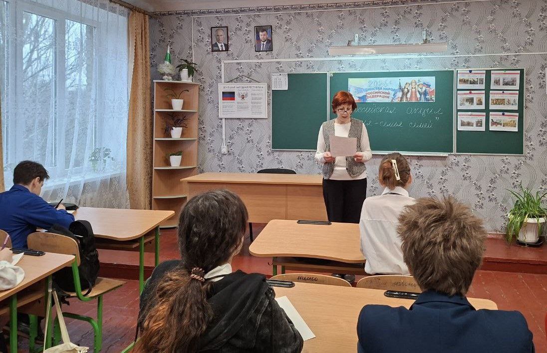 Обучающиеся ГБОУ «Мироновская школа № 10 г.о. Дебальцево» приняли участие во Всероссийской просветительской акции «Россия – семья семей», которая прошла 18 марта 2026 года в рамках Дня воссоединения Крыма с Россией. Акция проводилась очно в формате диктанта и была направлена на воспитание патриотизма, углубление знаний о семейных ценностях и истории страны, популяризации русского языка. В мероприятии приняли участие обучающиеся 5–11 классов.