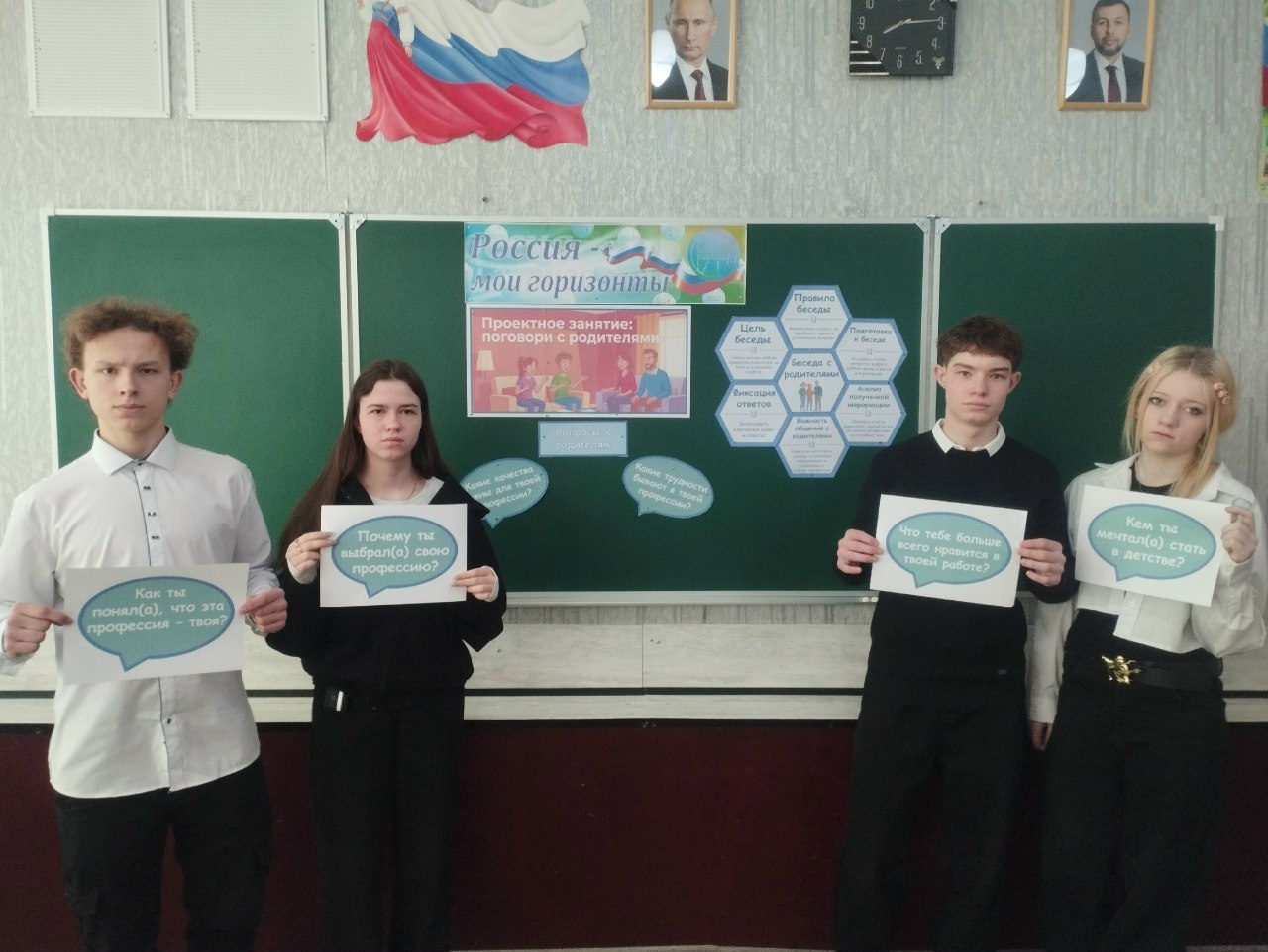 19 марта в школе № 2 в рамках курса внеурочной деятельности «Россия — мои горизонты» прошли занятия на тему «Проектное занятие: поговори с родителями».