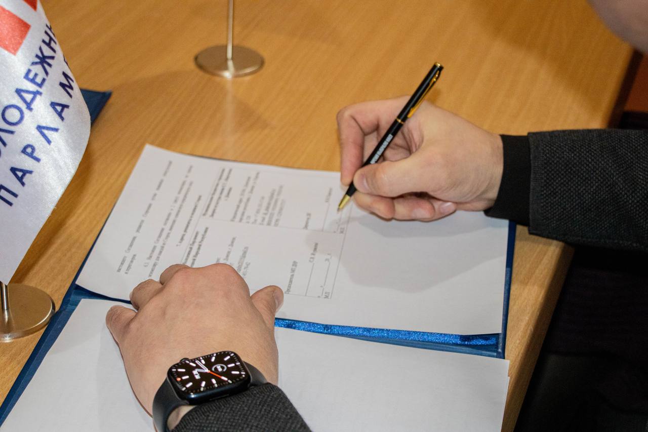Сегодня официально закрепили наше сотрудничество с учреждением подписанием соответствующего документа. Участие в церемонии приняли Председатель Молодежного Парламента Сергей Журавлев и представители Комитета по патриотическому воспитанию и социальной адаптации молодежи, участвующей в боевых действиях.