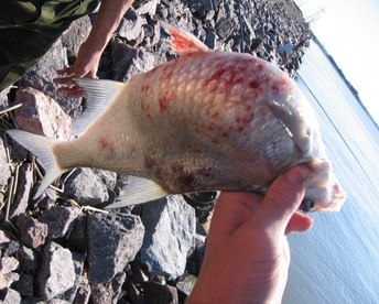 Весенняя виремия карпов (синонимы: инфекционная водянка, краснуха, весенняя вирусная болезнь) - это острое, системное вирусное заболевание, характеризующееся острым течением с проявлением нарушения координации движений, отеков тела, ерошения чешуи, одно- или двустороннего пучеглазия, точечных или очаговых кровоизлияний у основания грудных и брюшных плавников. К заболеванию наиболее восприимчивы особи обыкновенного карпа в течение первых двух лет своей жизни. Инфекция также была выявлена у пестрого и белого толстолобика, белого амура, карпов кои, основных китайских карпов, карасей, плотвы, язя, линя и сома.