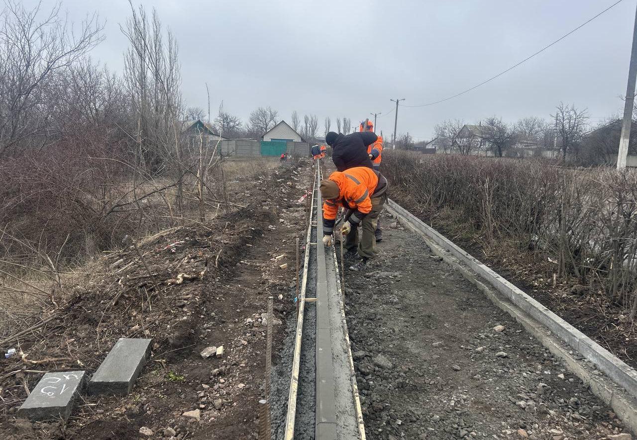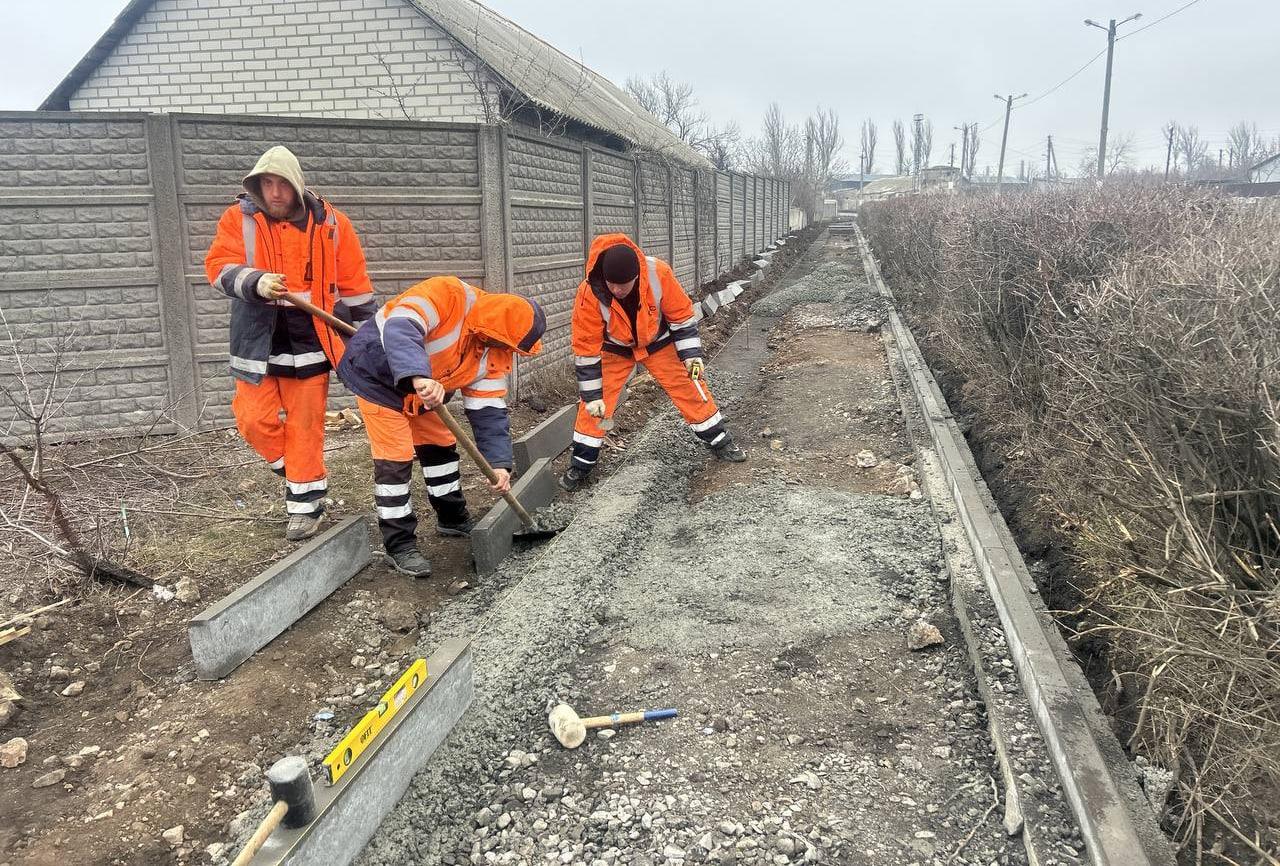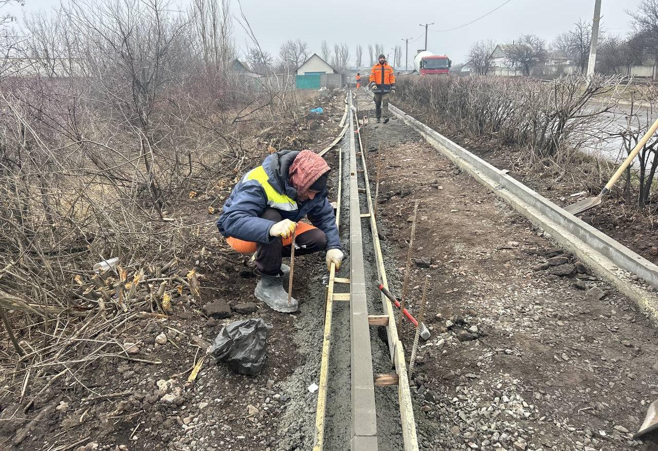 Специалисты из региона-шефа уже провели отсыпку материала и продолжают установку бордюров по улице Постышева.