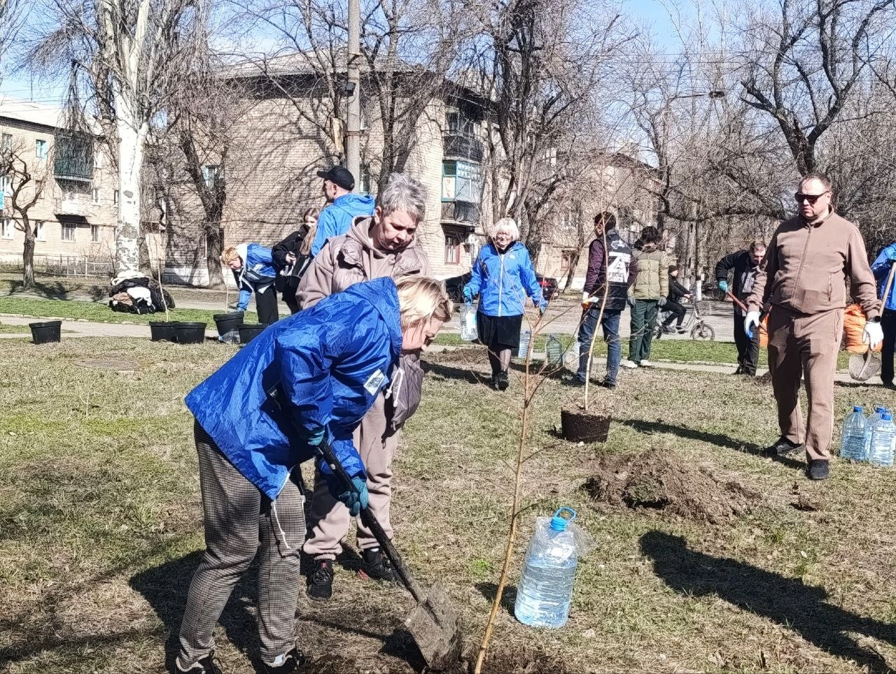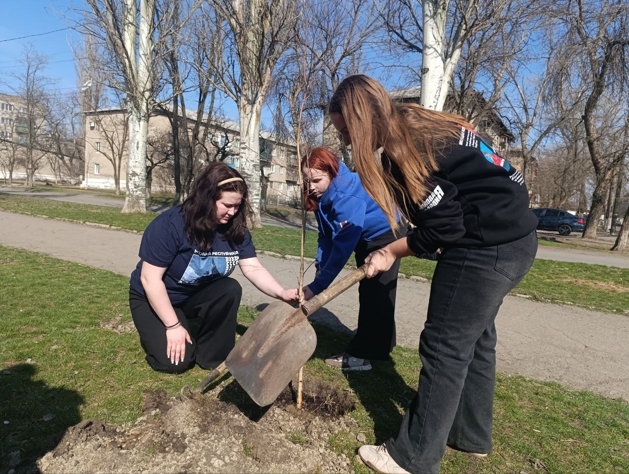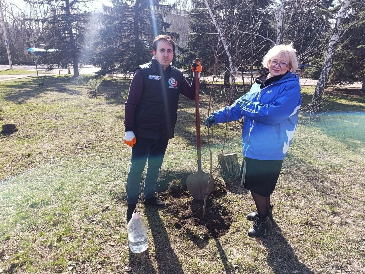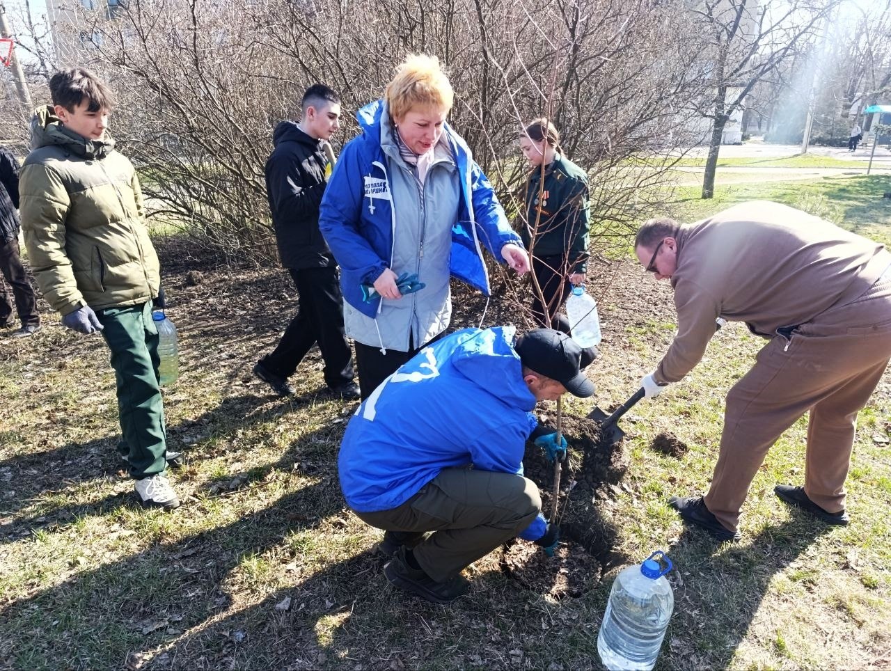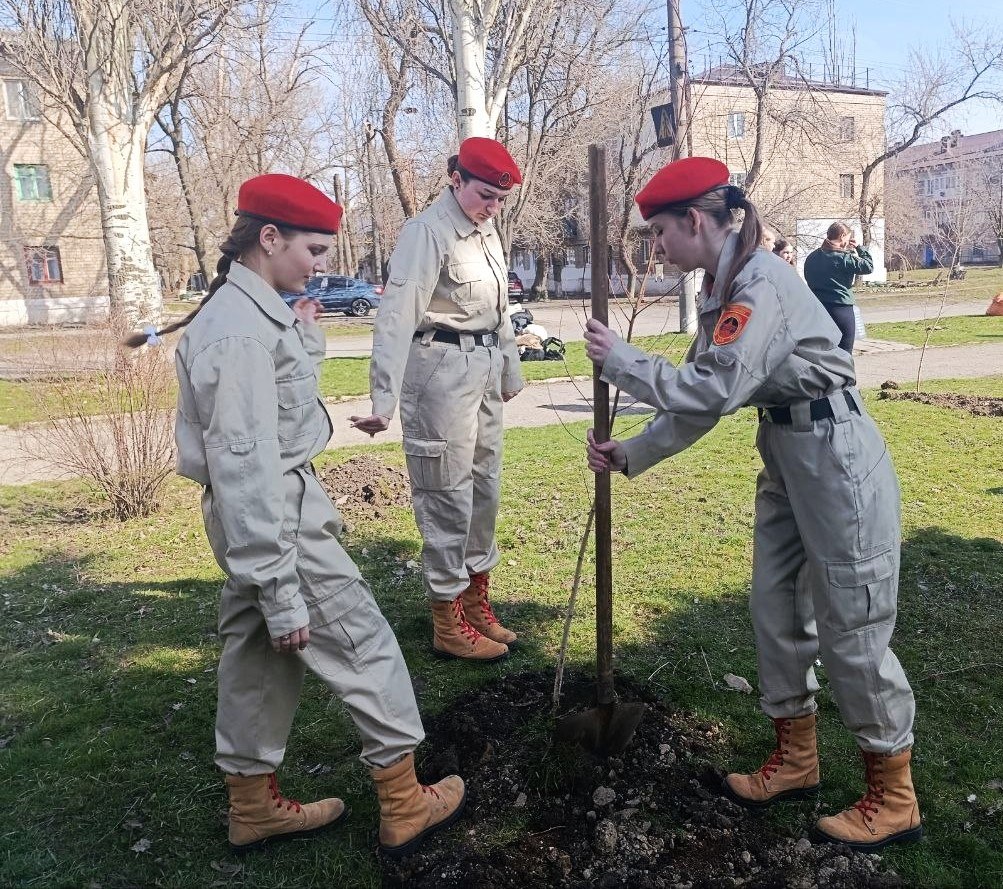 23 марта в рамках регионального проекта "Донбасс — наш дом" при поддержке партии "Единая Россия" представители Шахтерского муниципального совета ДНР под руководством председателя Ольги Катанцевой, вместе с заместителем главы администрации Шахтерского муниципального округа Наири Крмаджяном и с активными членами Народной дружины, Молодой гвардии «Единой России», движения «Юнармия» и учащимися гвардейских классов, приняли участие в акции по озеленению территории.