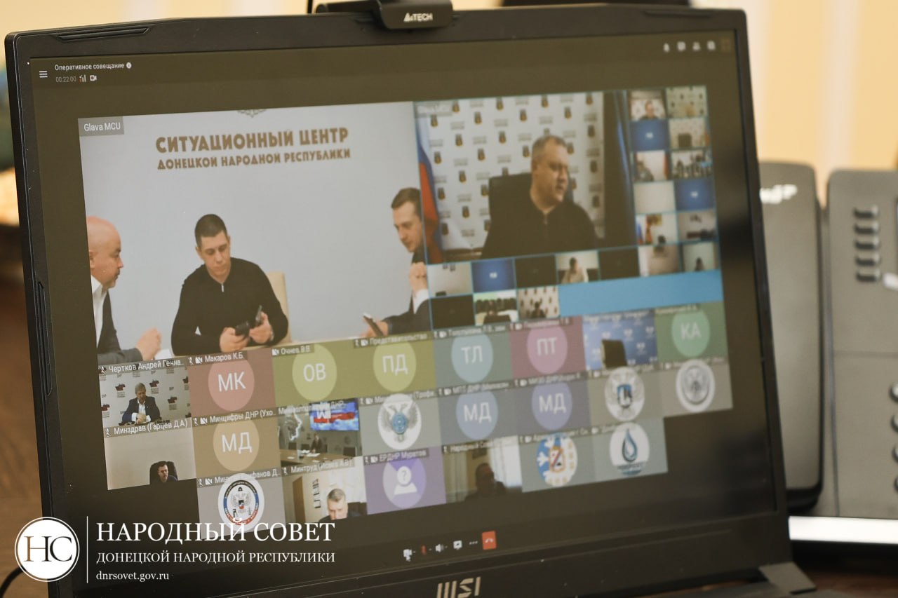 Заместитель Председателя Народного Совета ДНР Андрей Крамар в режиме видеосвязи принял участие в оперативном совещании с Главой ДНР Денисом Пушилиным.
