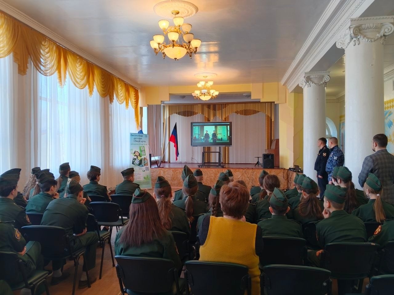В преддверии 10-летия Федеральной службы войск национальной гвардии России и 215-летия войск правопорядка сотрудники вневедомственной охраны Главного управления Росгвардии по ДНР организовали тематическое занятие для воспитанников подшефных классов школы №1.
