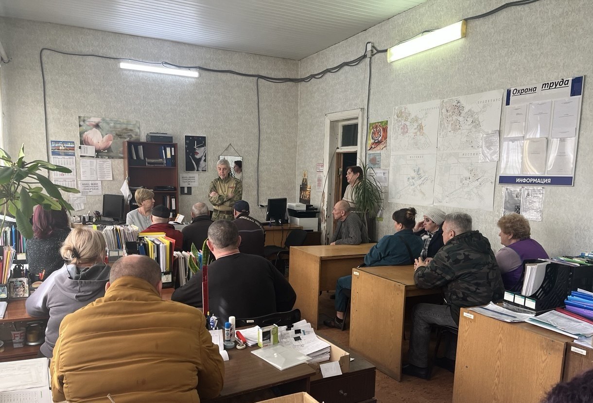 Встретилась с трудовым коллективом Пролетарского районного участка ВКС № 8 ГУП ДНР «Вода Донбасса». На встрече присутствовал депутат Народного Совета ДНР Александр Мальков.