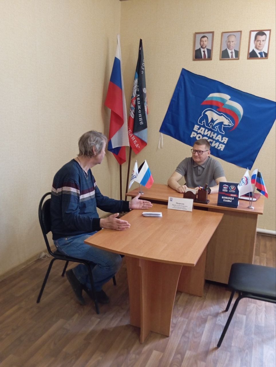 Депутат Народного Совета Донецкой Народной Республики Вадим Морозов провел личный приём граждан в общественной приёмной Партии "ЕДИНАЯ РОССИЯ" Старобешевского муниципального округа.