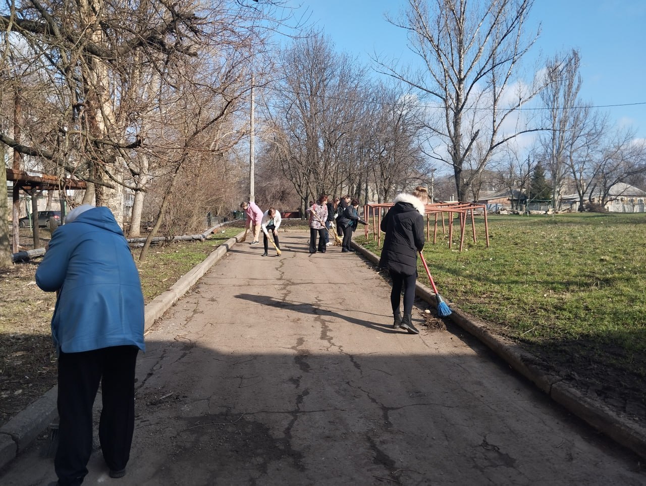 Были убраны сухие ветки и листва, очищены клумбы, выметены дорожки, вдоль бордюров по проезжей части был собран весь накопившийся мусор в мешки.#ДонбассНашДом...