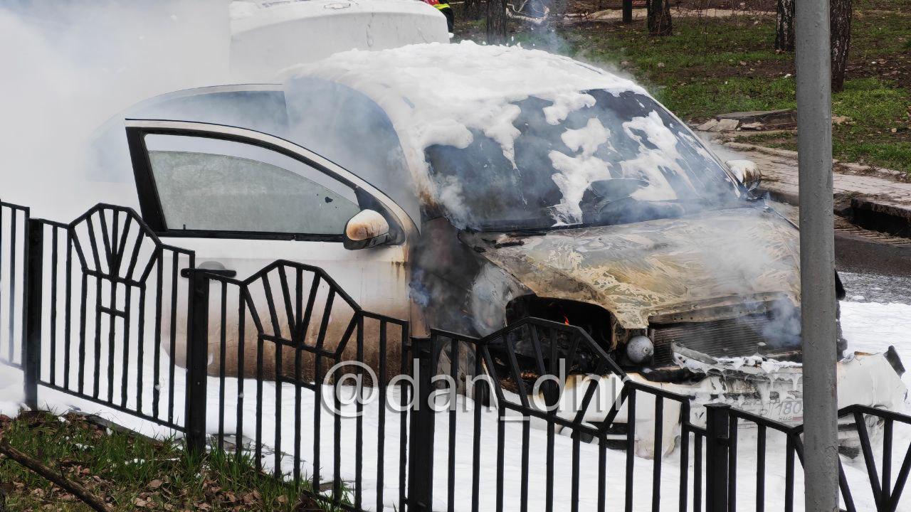Корр. сообщил, что в загоревшемся автомобиле была угроза взрыва газового баллона, но ее удалось избежать — сотрудники МЧС молниеносно ликвидировали возгорание