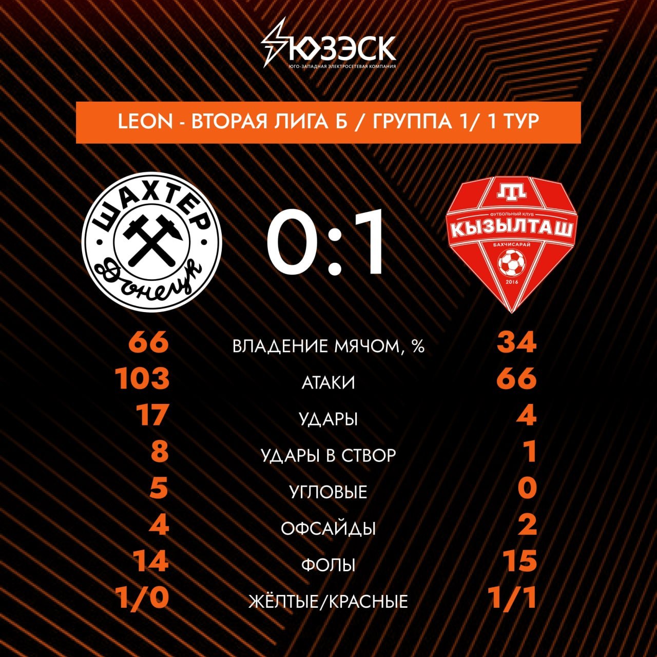 Футбольная команда горняков проиграла бахчисарайскому “Кызылташу” в первом матче со счетом 0:1 и по итогам первого тура Первенства России по футболу среди команд второй лиги “Дивизион Б” занимает лишь десятое место.