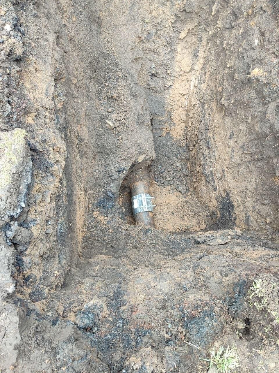 Также работы по устранению утечки провели на поврежденной чугунной трубе диаметром 200 мм. Рабочие раскопали котлован и установили ремонтную муфту на аварийный участок.
