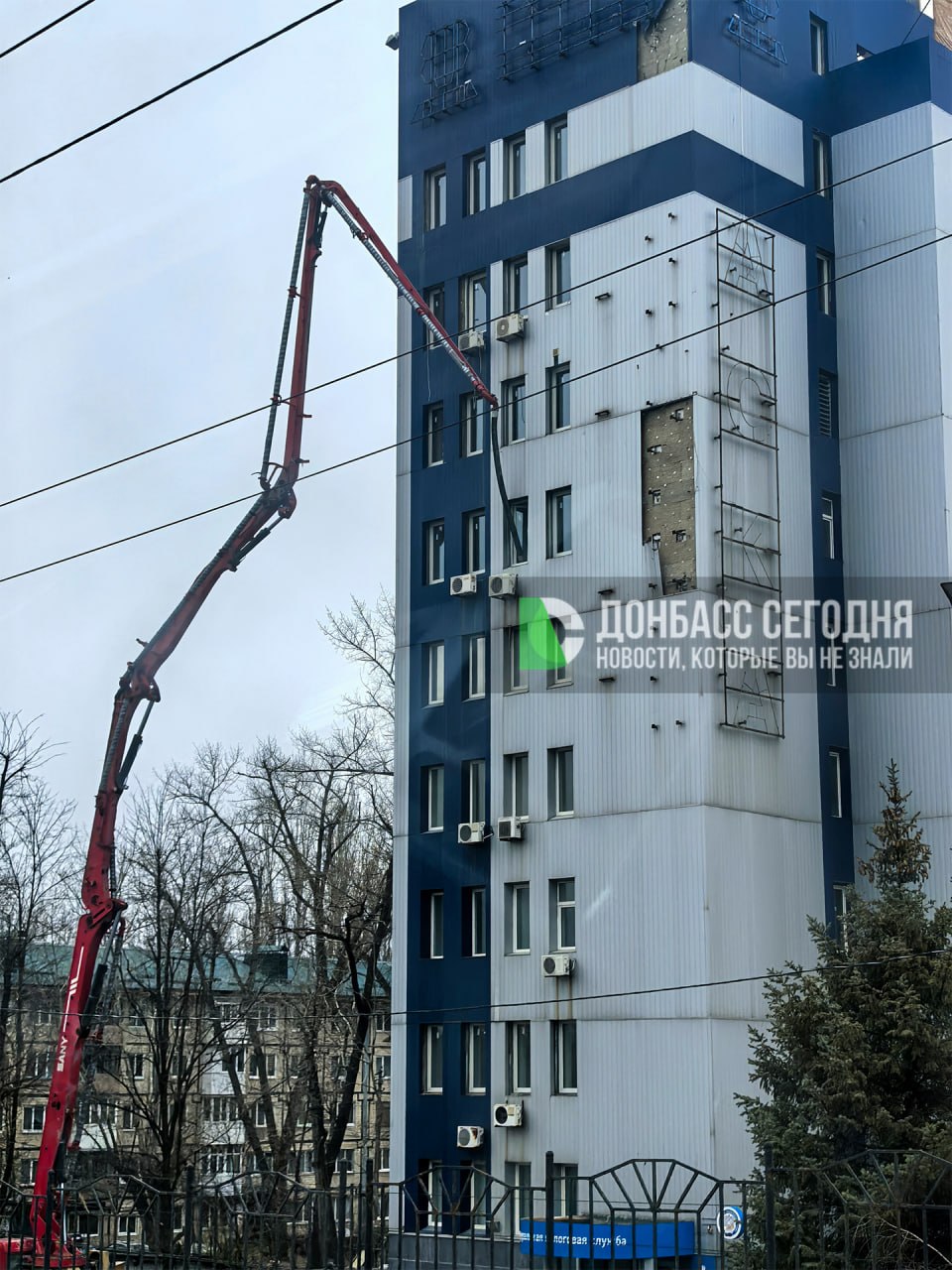 Какая впечатляющая штука на Макаронке заливает бетон в ремонтируемом здании ФНС Калининского района Донецка