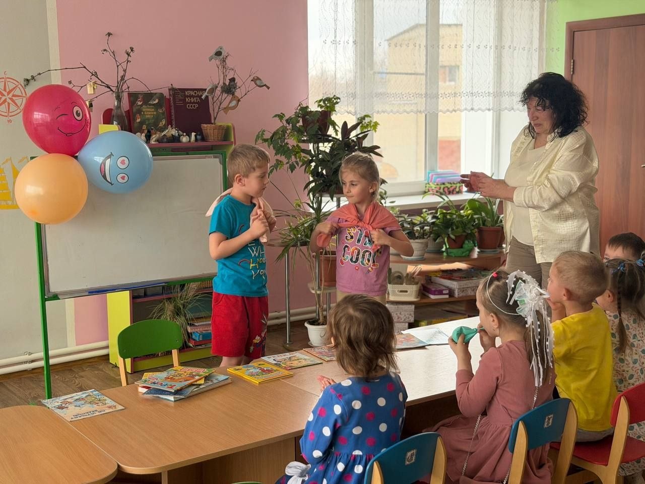 Ребята вспомнили любимые сказки, приняли участие в весёлых конкурсах: «Угадай сказку», «Узнаем героев сказок по их портретам», «Угадай сказку по иллюстрации». Конкурс «Повяжи платочек» вызвал много смеха. Встреча вызвала у воспитанников много положительных эмоций, с интересом рассматривали красивые новые книги, затем малыши отвечали на различные вопросы о сказочных персонажах.