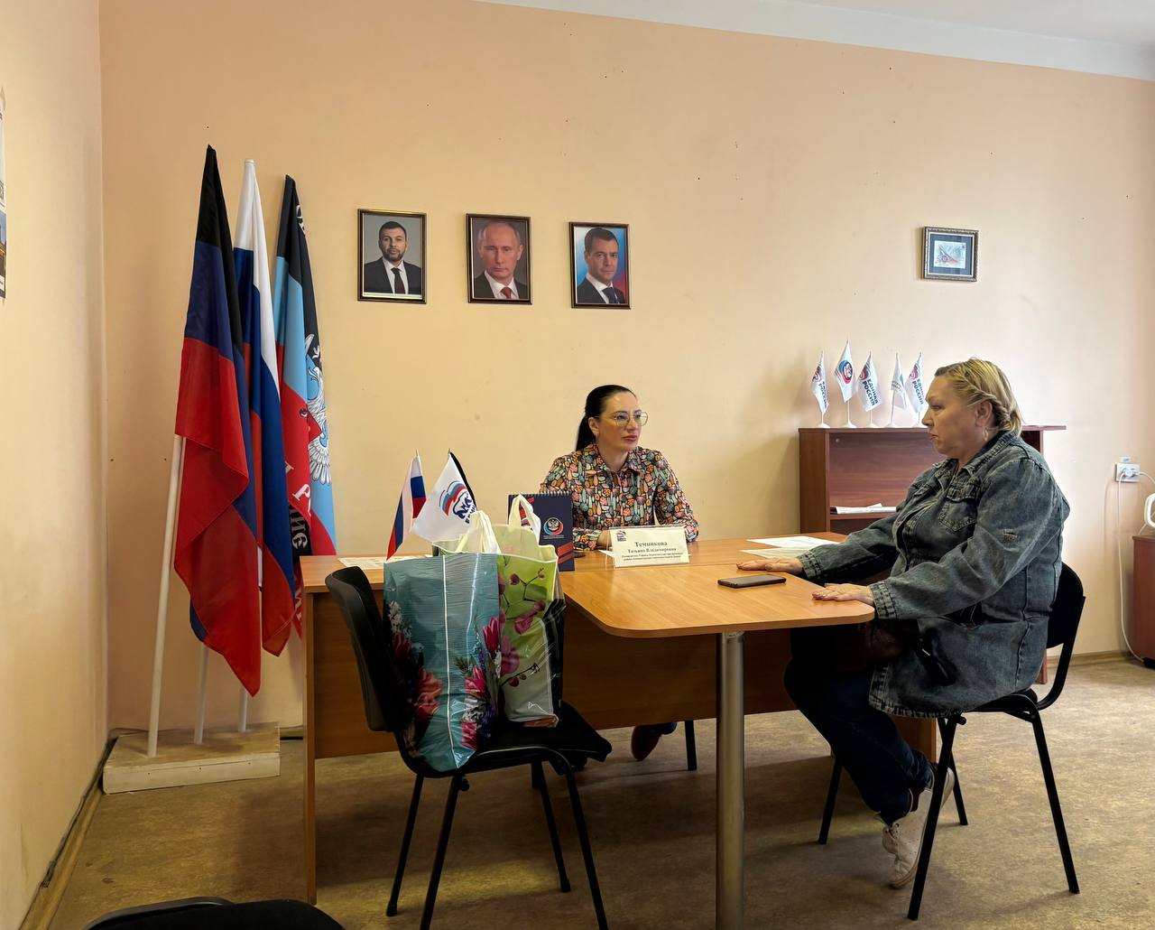 Руководитель Управы Ленинского внутригородского района Администрации городского округа Донецк Татьяна Темникова передала продуктовый набор для Елиферовой Валентины Ивановны, которой недавно исполнилось 90 лет.