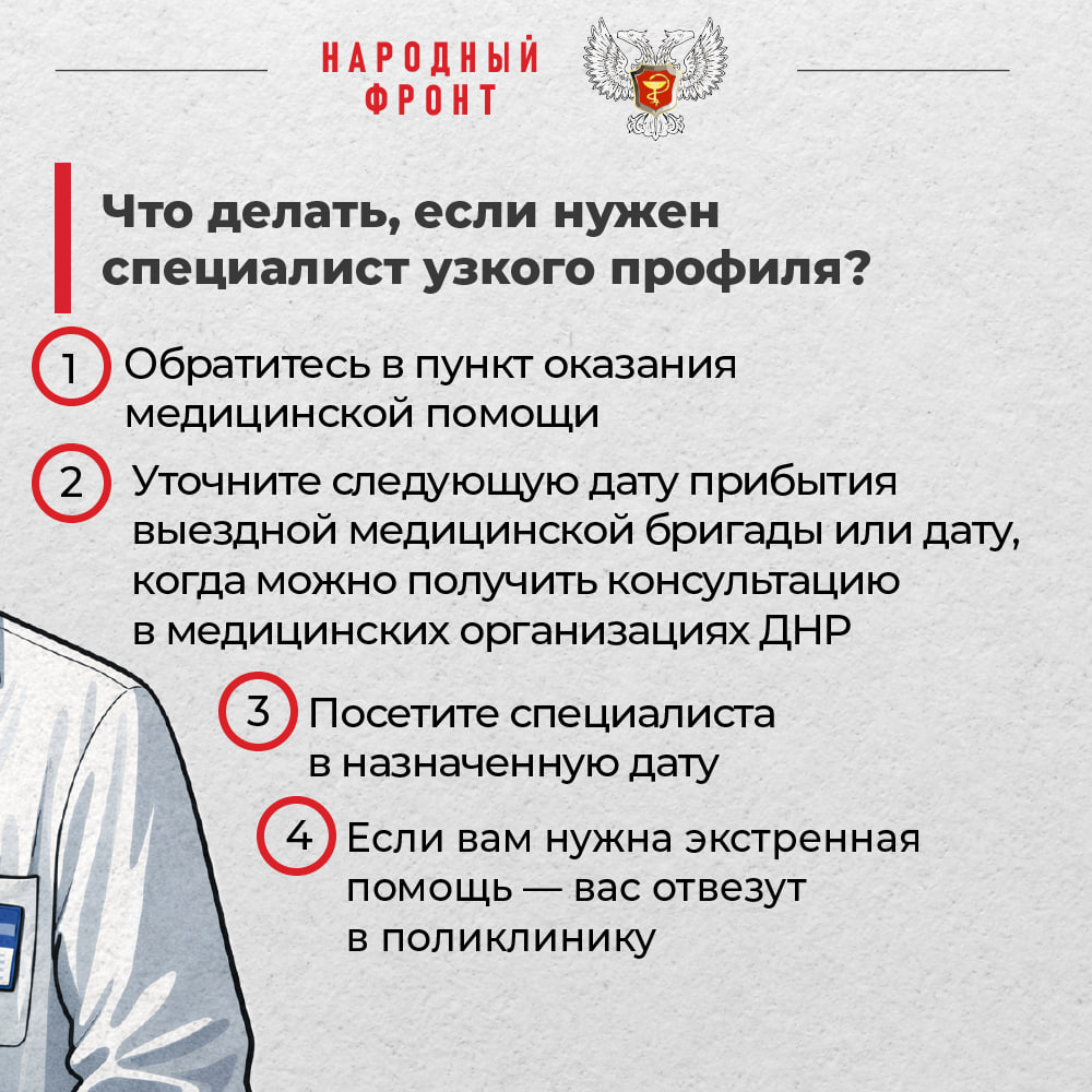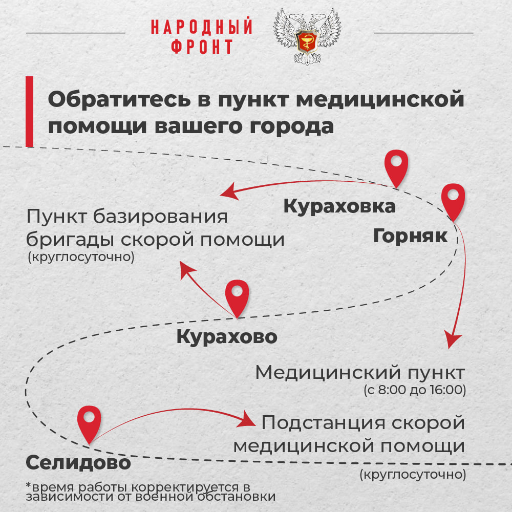 В карточках собрали ответы Минздрава ДНР на все часто задаваемые вопросы: от того, как получить медицинскую консультацию, до описания действий в экстренных ситуациях. На сегодняшний день эта помощь доступна в четырёх населённых пунктах: в Селидово, Курахово, Горняке и Кураховке. В будущем планируется создать больше подобных точек.