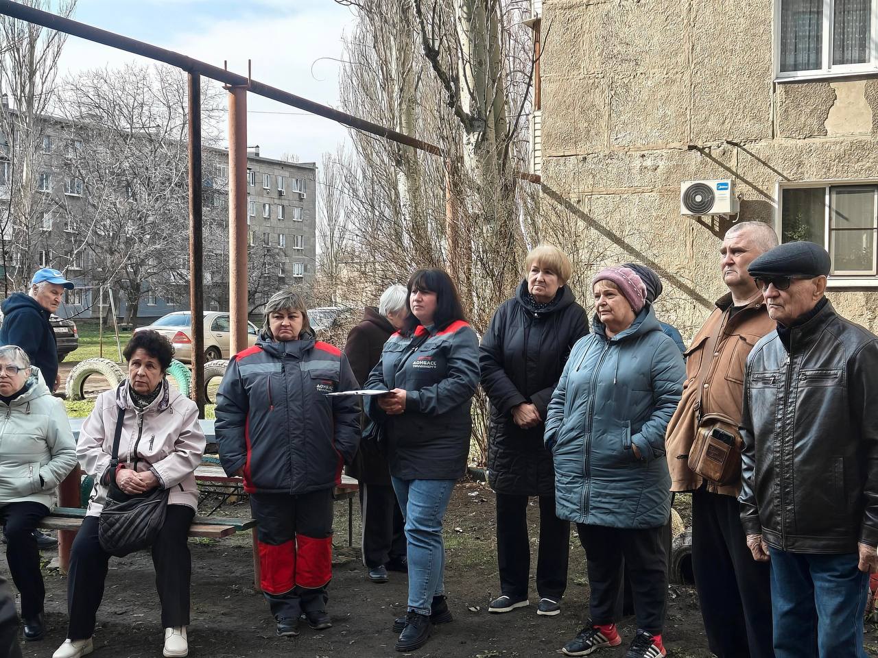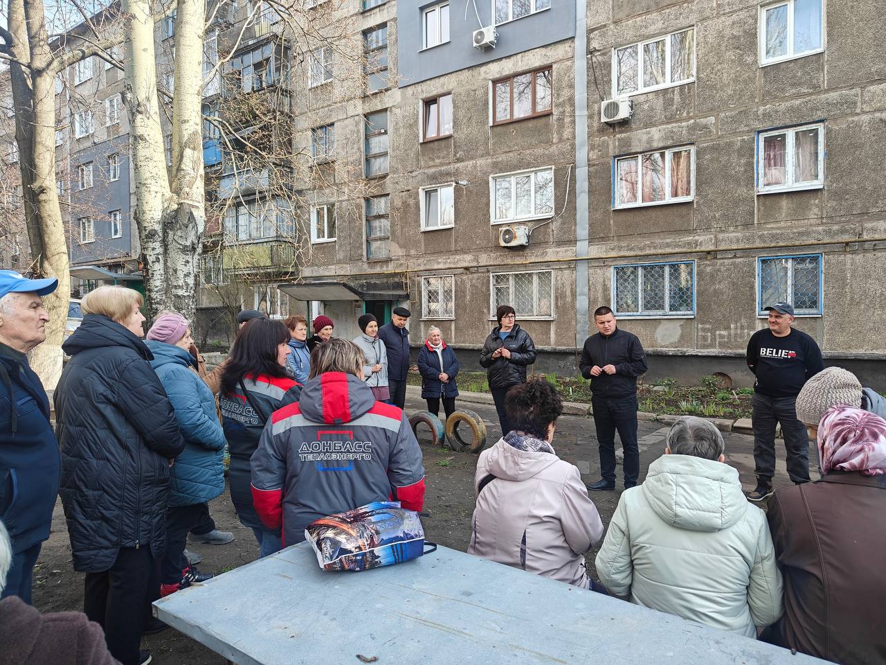 Заместитель главы администрации, помощник исполнительного секретаря местного отделения партии "Единая Россия" Владимир Судиловский, депутат Снежнянского городского совета Александр Пащенко и представители теплосети в рамках партпроекта "Донбасс - наш дом" провели встречу с жителями улицы Брюсова.